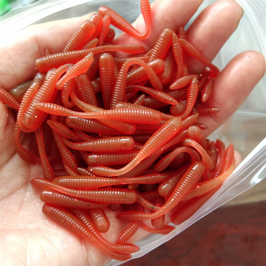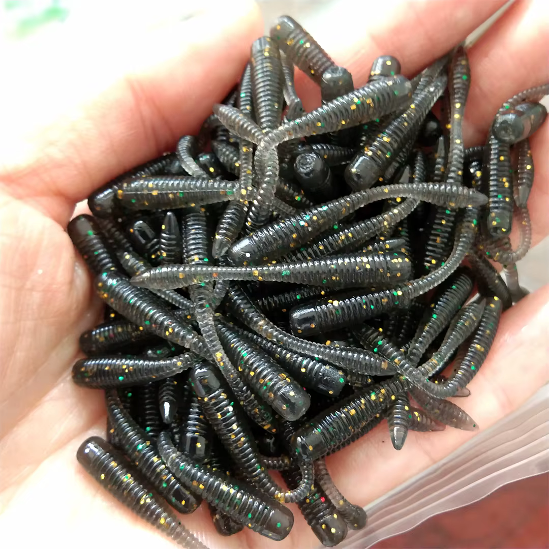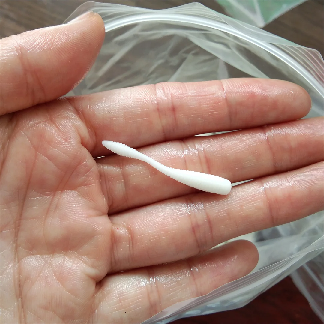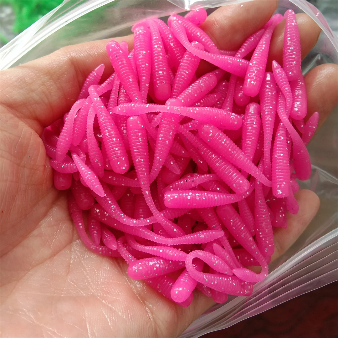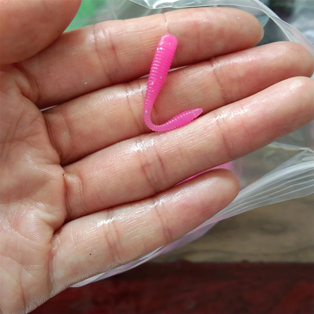 50 Uds 3,8 cm 0,2g cebo de gusano lubina trucha pesca en hielo olor a camarón con sales señuelo de pesca de silicona suave