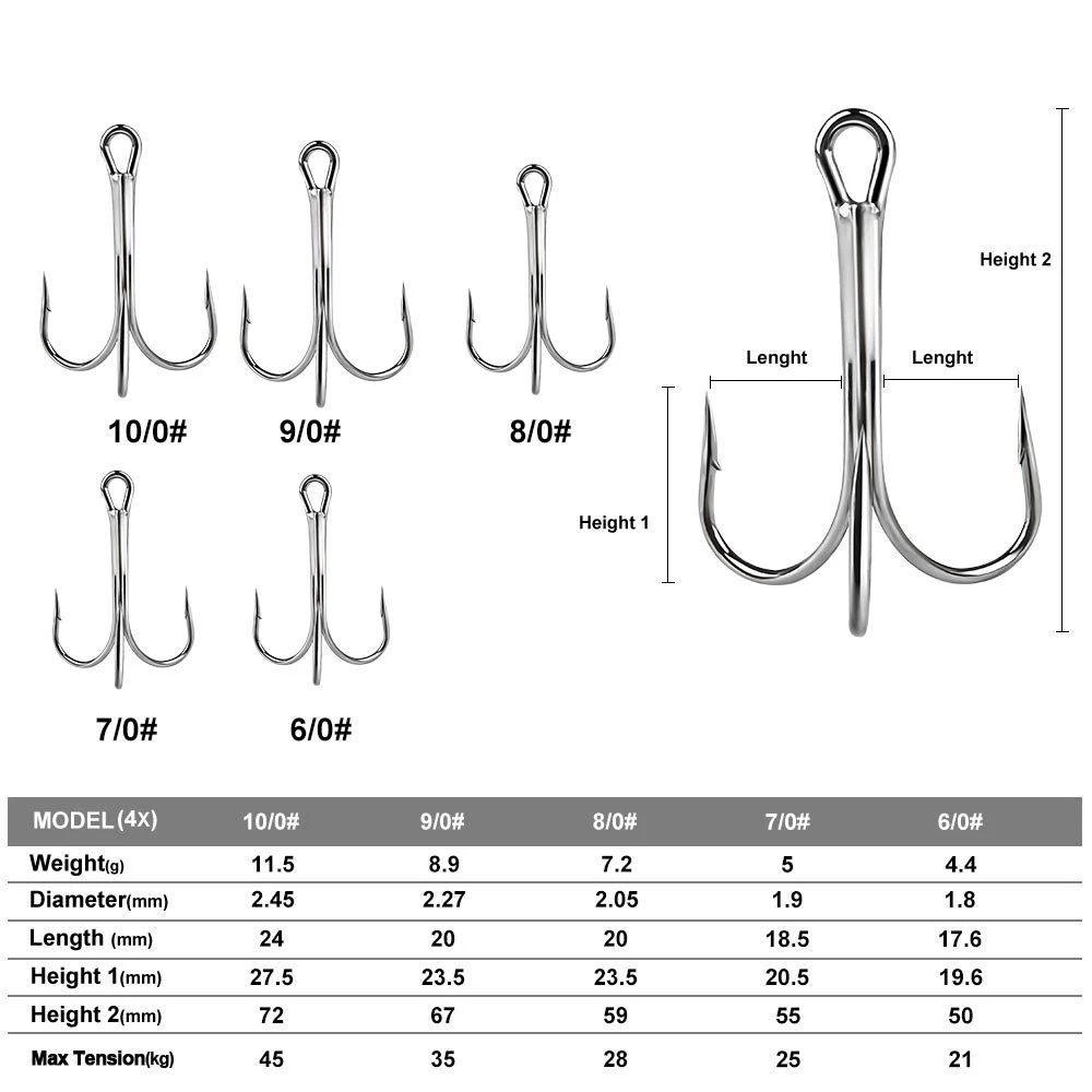 Anzuelo triple grande: construido para ser pesado y anzuelos de gran tamaño para luchar contra el pez gato y el lucioperca de la trucha de agua salada, casi inflexibles e irrompibles.