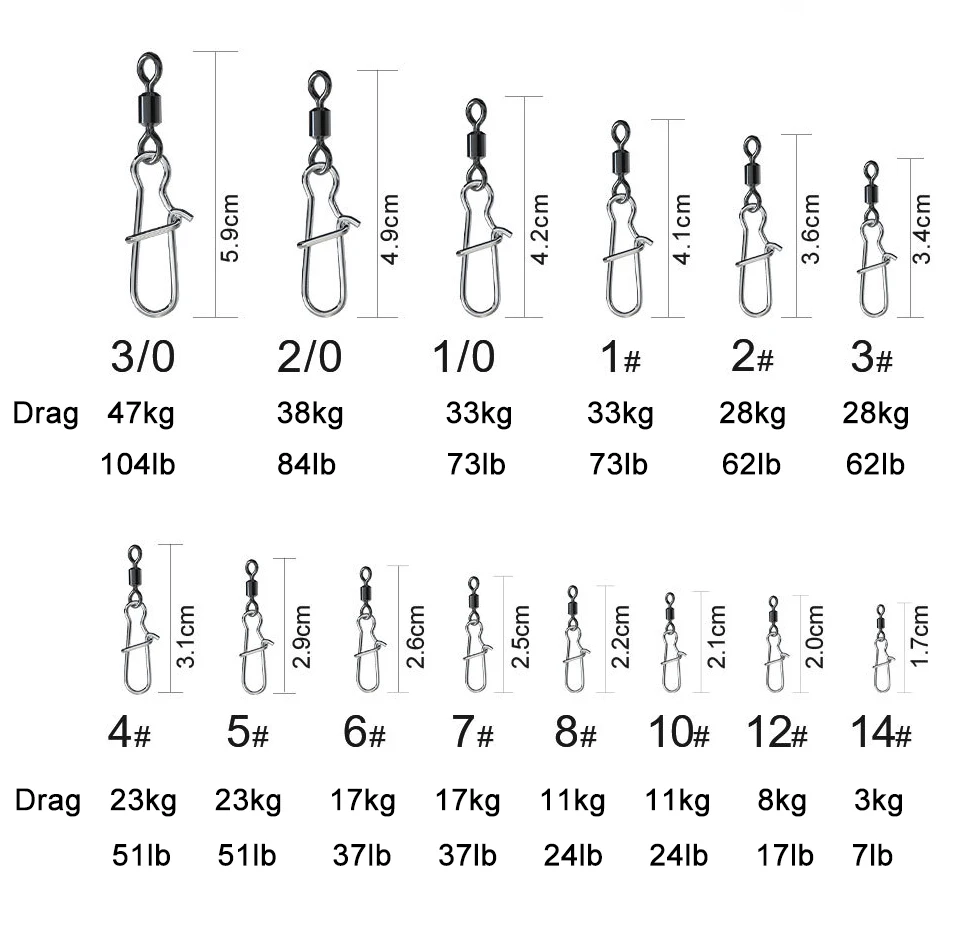 Conectores de pesca para hilo de pescar, señuelos de pesca, anzuelos de tiro.material: acero al carbono