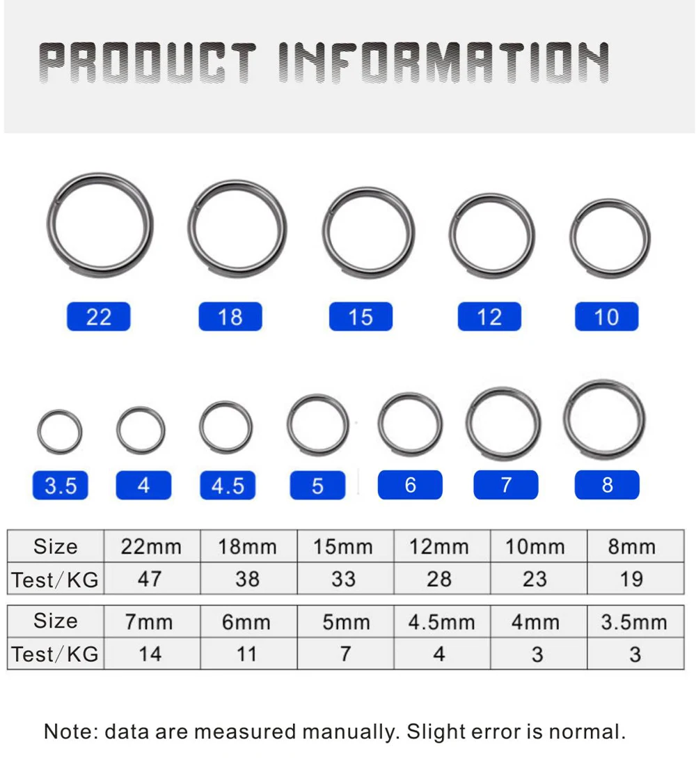 50 Uds. Anillos divididos de pesca de acero inoxidable 3,5mm-15mm accesorios de conector de aparejos de pesca doble bucle dividido para señuelo de pesca