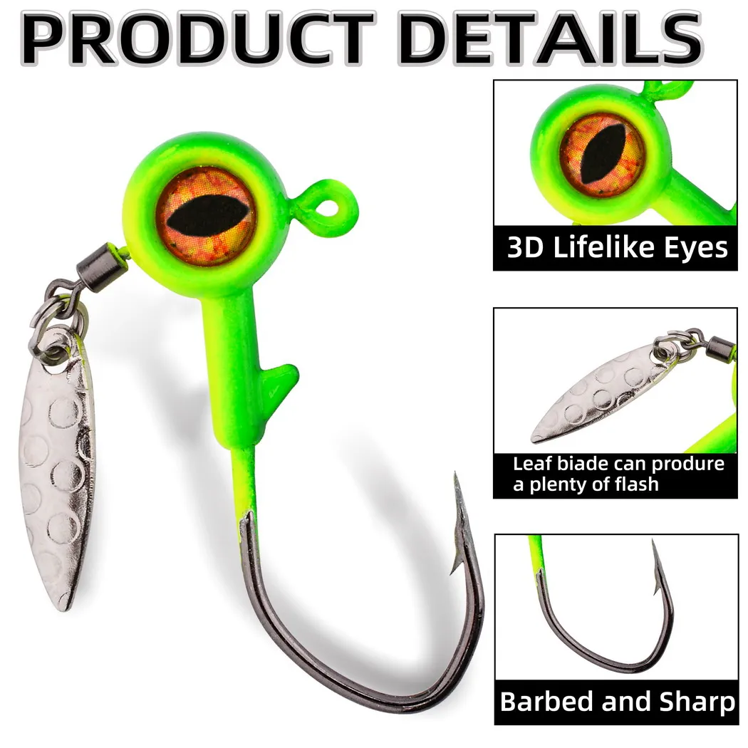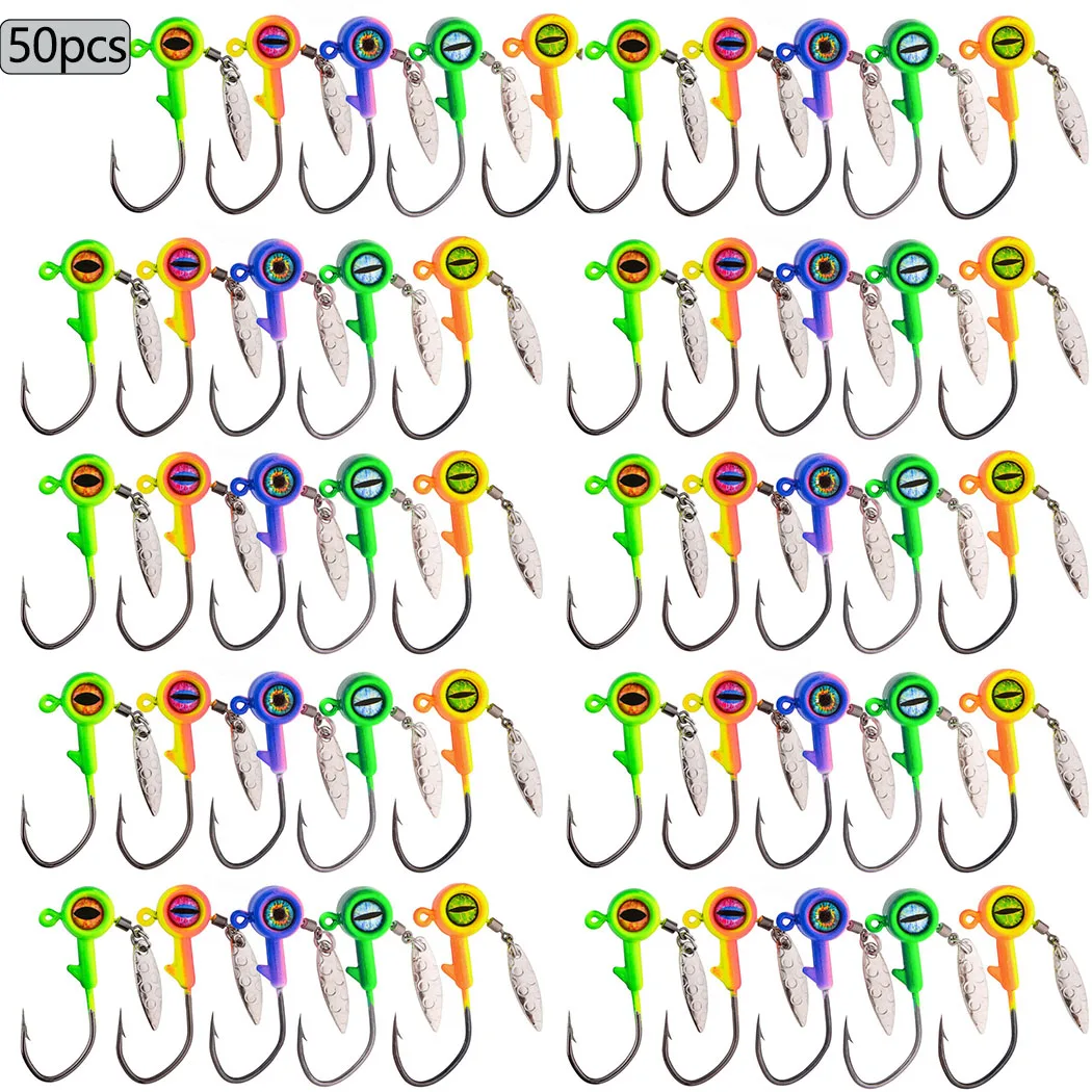 50 Uds anzuelo con cabeza de anzuelo 1,75g 3,5g 5g 7g 10g anzuelo de pesca giratorio lentejuelas plantilla señuelo cucharas de Metal cebos para aparejos de pesca de gusano blando