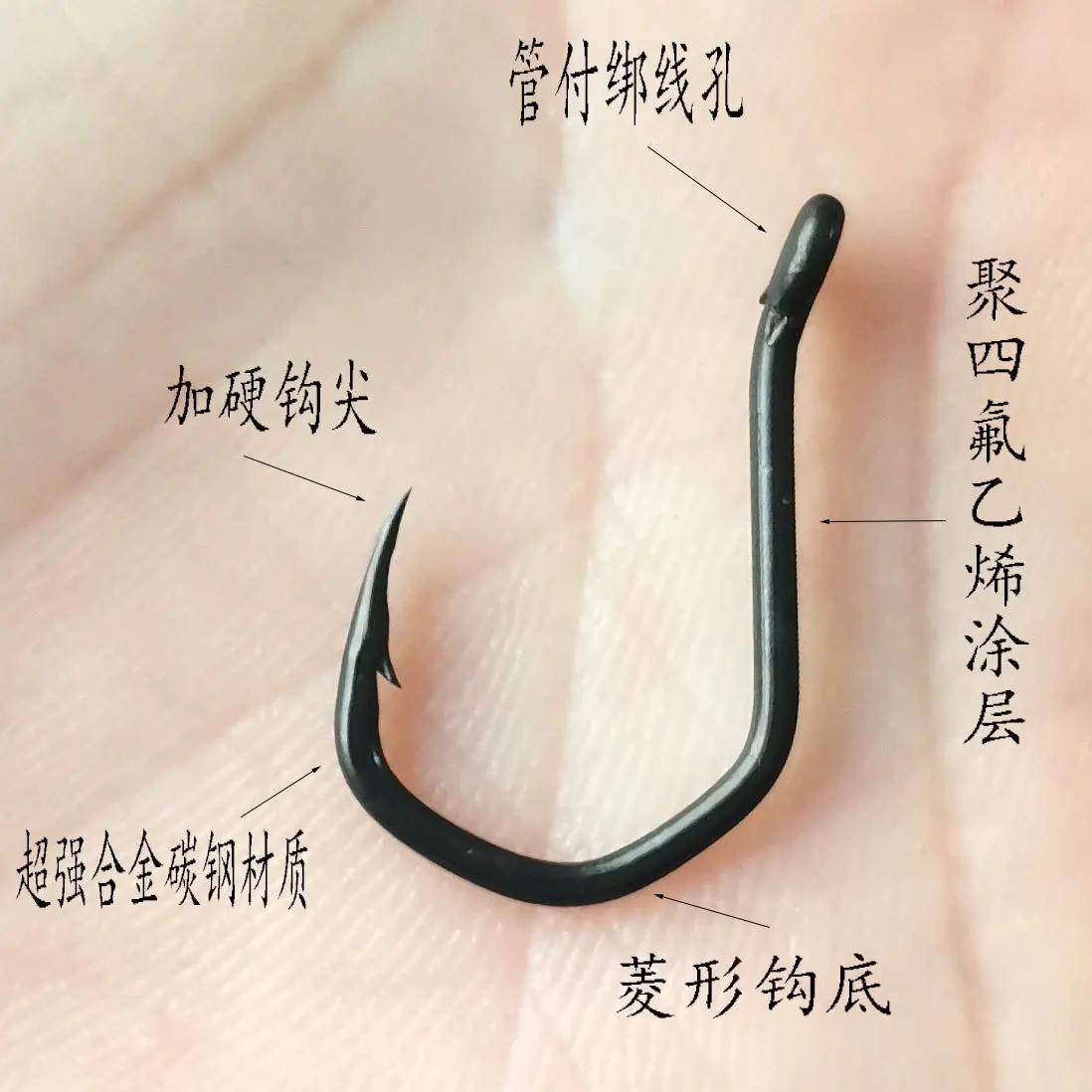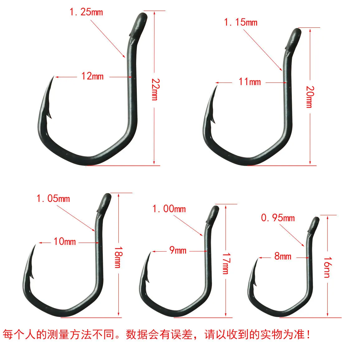 50 Uds. Anzuelo de pesca de carpa con revestimiento de PTFE, cabeza de plantilla Yn, anzuelos de carpa con vástago curvo de acero de alto carbono, anzuelo con púas, ganchos para aparejos de cabello Chod