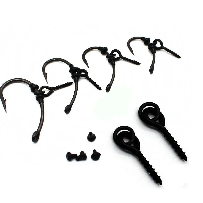 Anzuelo de pesca de carpa de 50, tope de anzuelo, tornillo de Boilie de cebo de clavija de piezas con lazo de enlace redondo, aparejo Ronnie, accesorios de pesca de carpa, aparejos