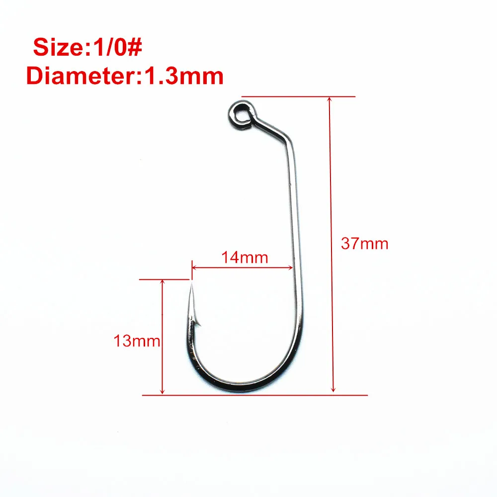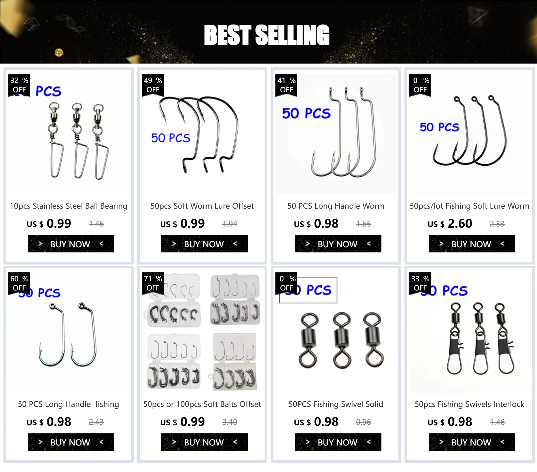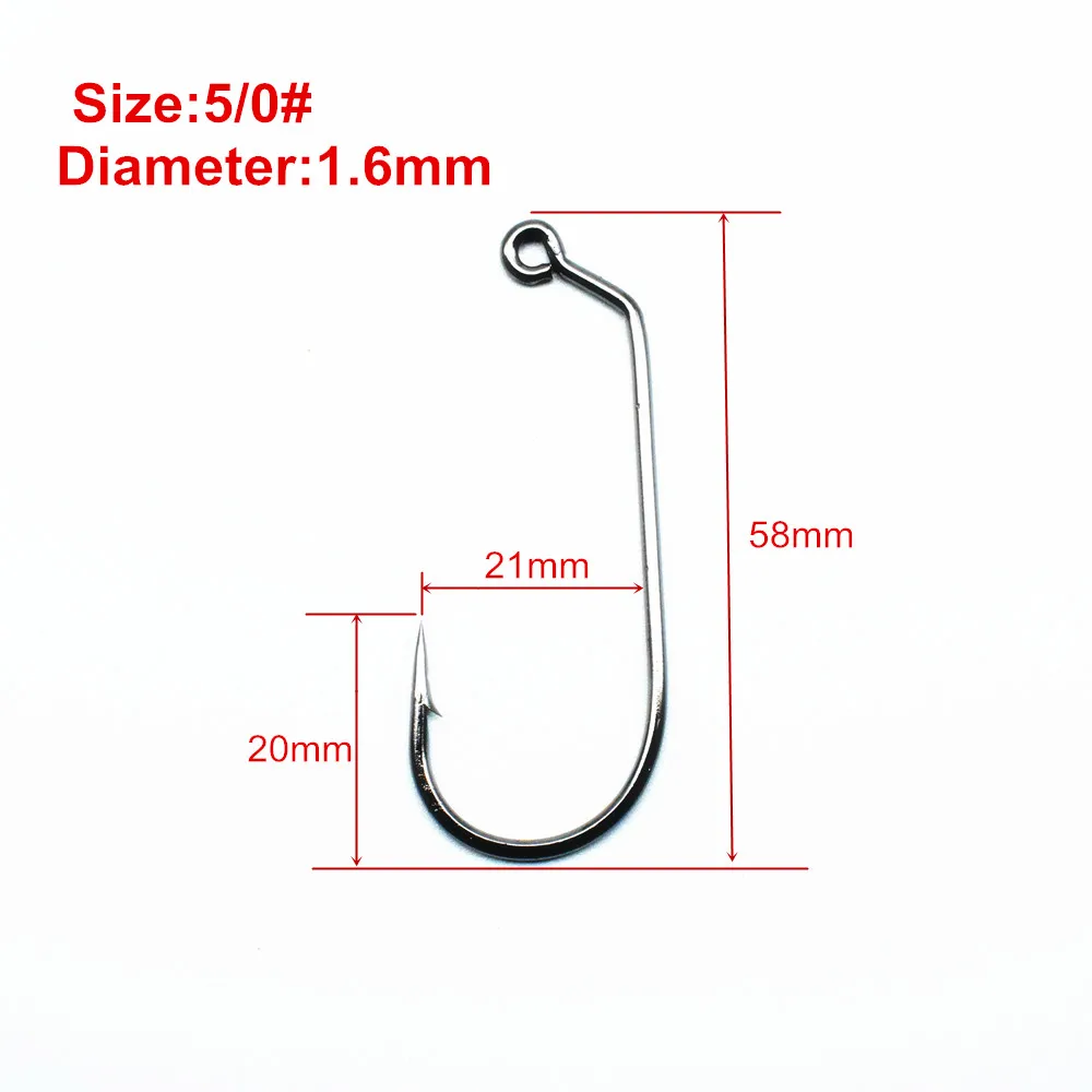 50 Uds. Anzuelo de pesca con mango largo, anzuelo de manivela para cebo de gusano suave, anzuelo compensado