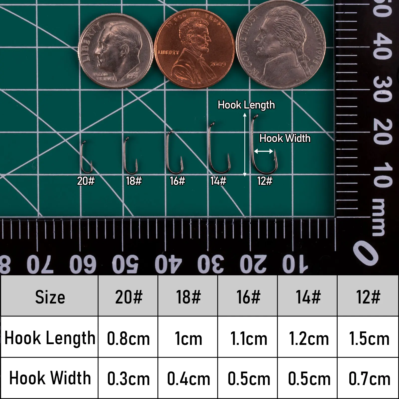 Tamaño: 4 # ,6 # ,8 # ,10 # ,12 # ,14 # ,16 # ,18 # ,20 # ,22 # ; Aplicado tanto en pesca en agua dulce como en agua salada.