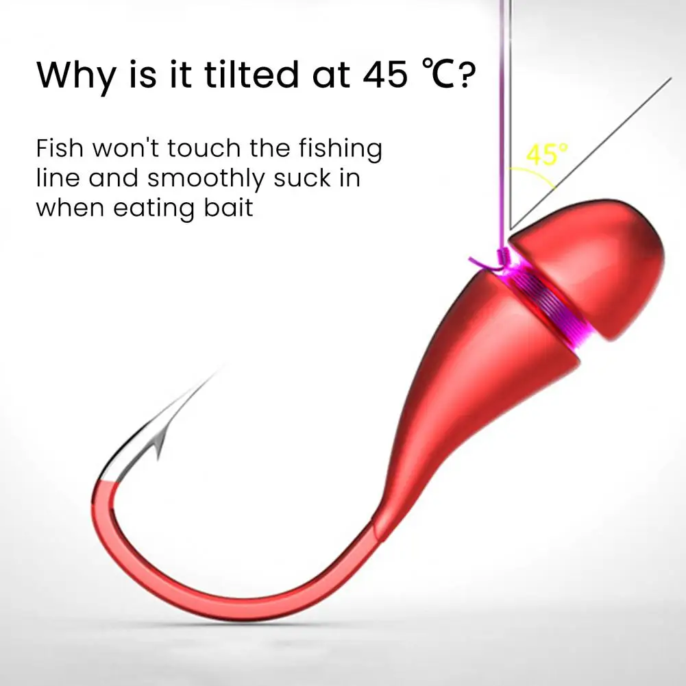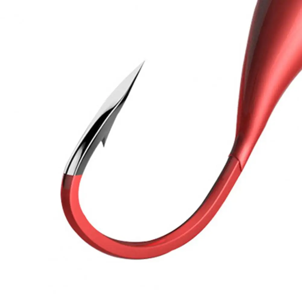 50 Uds anzuelo de pesca rojo Metal resistente 45 grados anzuelos con púas afiladas de agua dulce agua salada lubina percha accesorios de pesca