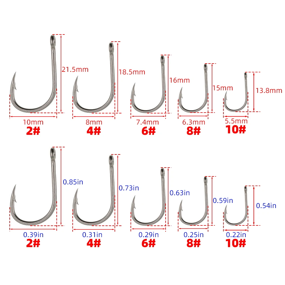 Descripción-Disponible tamaño 2 #, #4, 6 #, 8 #, 10 #-Fabricado con acero inoxidable de alto carbono-Revestimiento de teflón-Gancho de púas-Vástago largo-50 piezas por paquete-Embalaje en caja de plástico