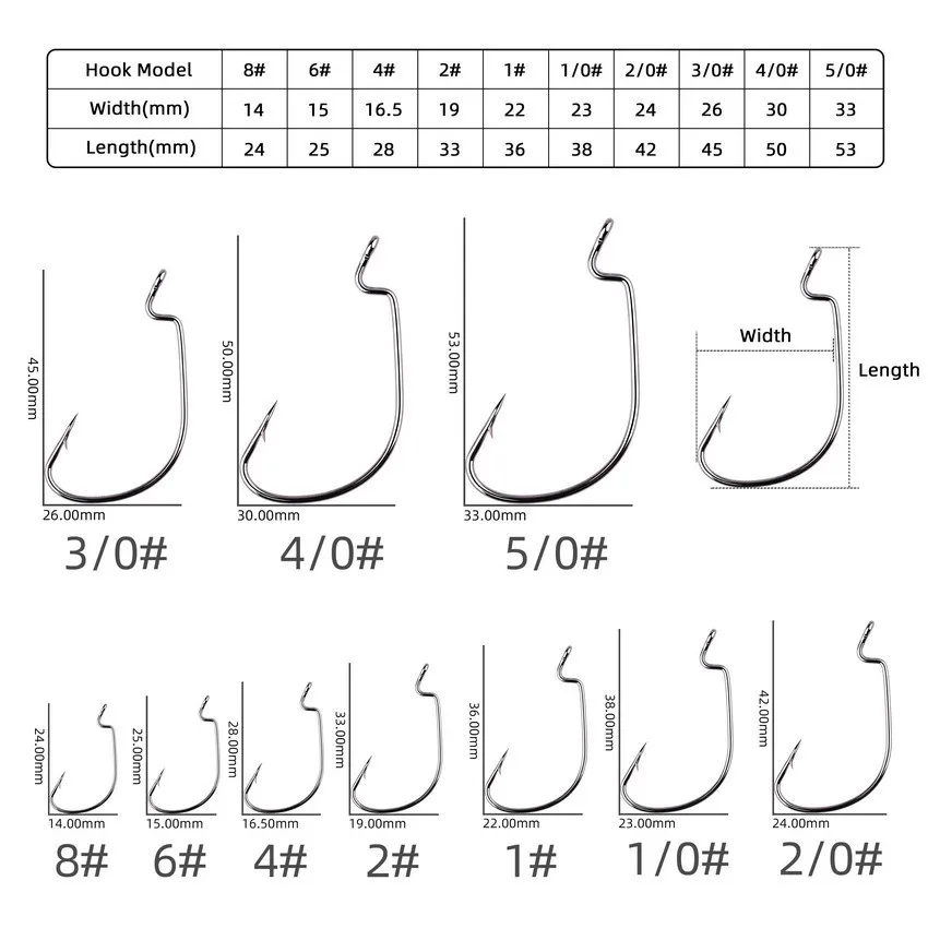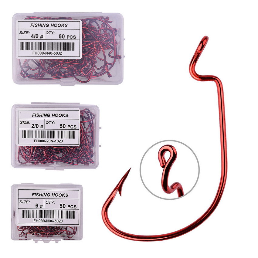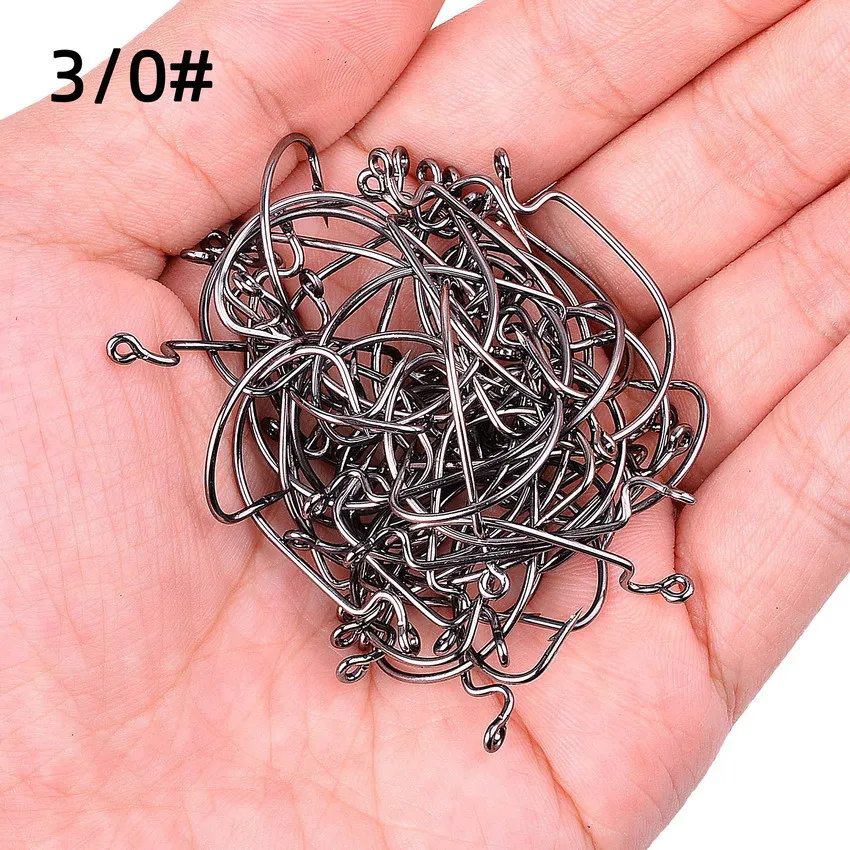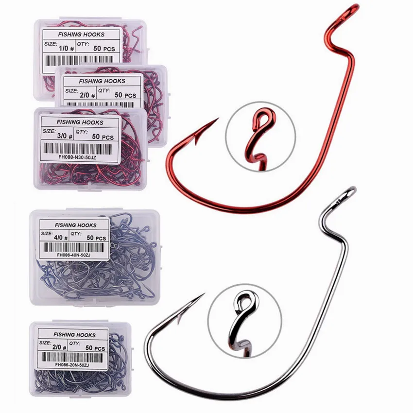 50 Uds. Anzuelos compensados de Pesca de agua salada, acero rico en carbono, manivela ancha, anzuelo, señuelo suave de gusano, anzuelo de Pesca, aparejos de Pesca de carpa