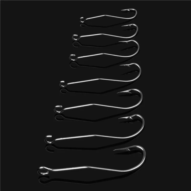 50 Uds. Anzuelos de pesca de Anguila de acero inoxidable, manivela afilada, anzuelo de vástago largo, anzuelo compensado, anzuelos para pesca de lubina peluda