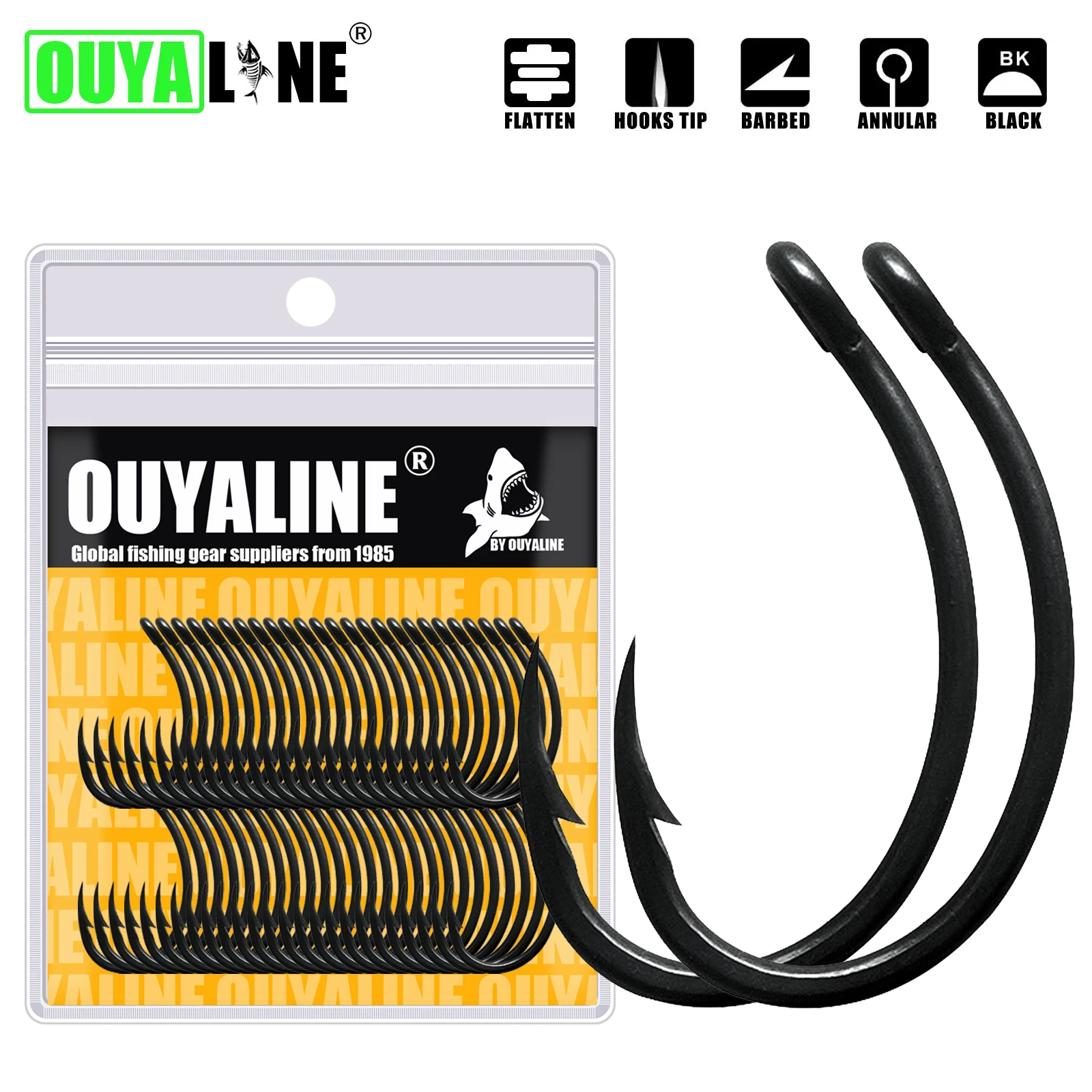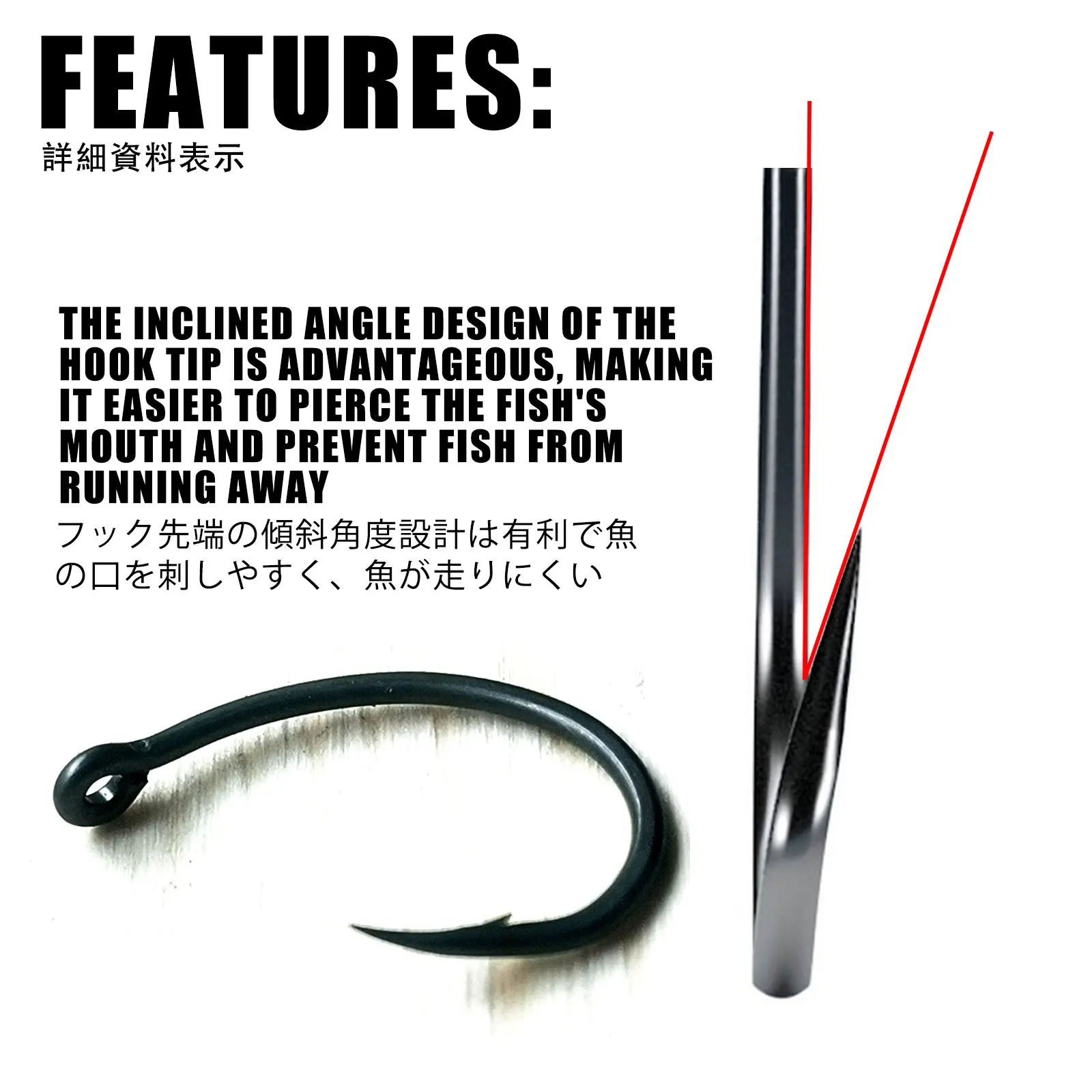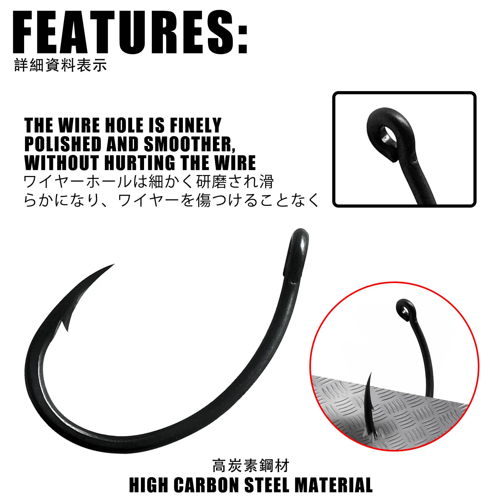 50 Uds. De anzuelos de pesca de carpa de alta calidad con revestimiento de acero inoxidable de alto carbono, anzuelos de púas de PTFE, aparejos de herramientas de pesca curvados anchos