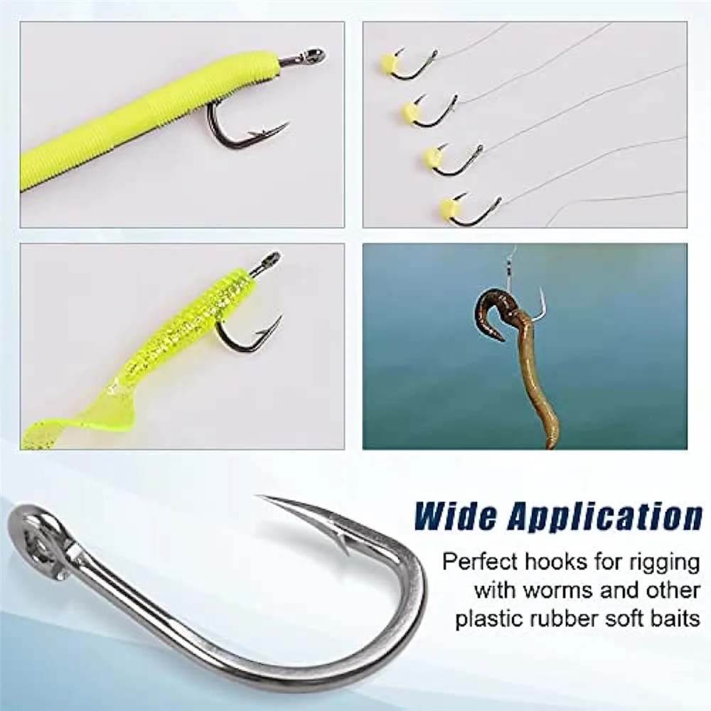 1. Anzuelos de cebo vivo para juegos grandes hechos de acero inoxidable 420 con níquel negro, 2X más fuertes que los ganchos normales, más duros y el tiempo antióxido más largo, adecuado para pesca en agua salada y agua dulce.