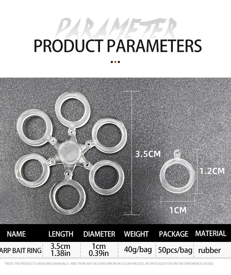50 Uds aparejo de cebo de carpa transparente pelotas de pesca de carpa bandas de cebo anillos de goma cebos Boilie Stop