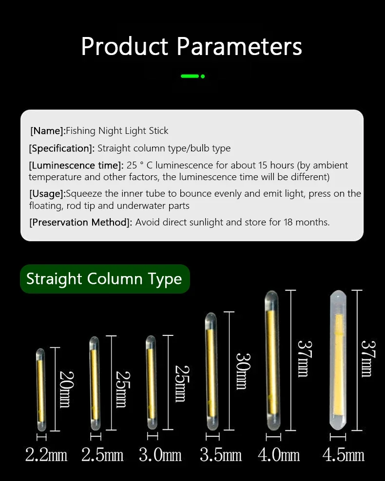 Caña flotante de pesca de 2,2-4,5mm con luz fluorescente de luciérnagas de 50-mm