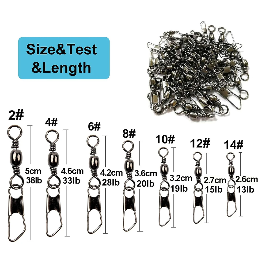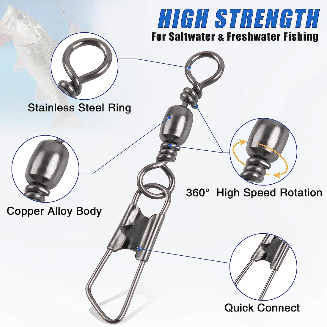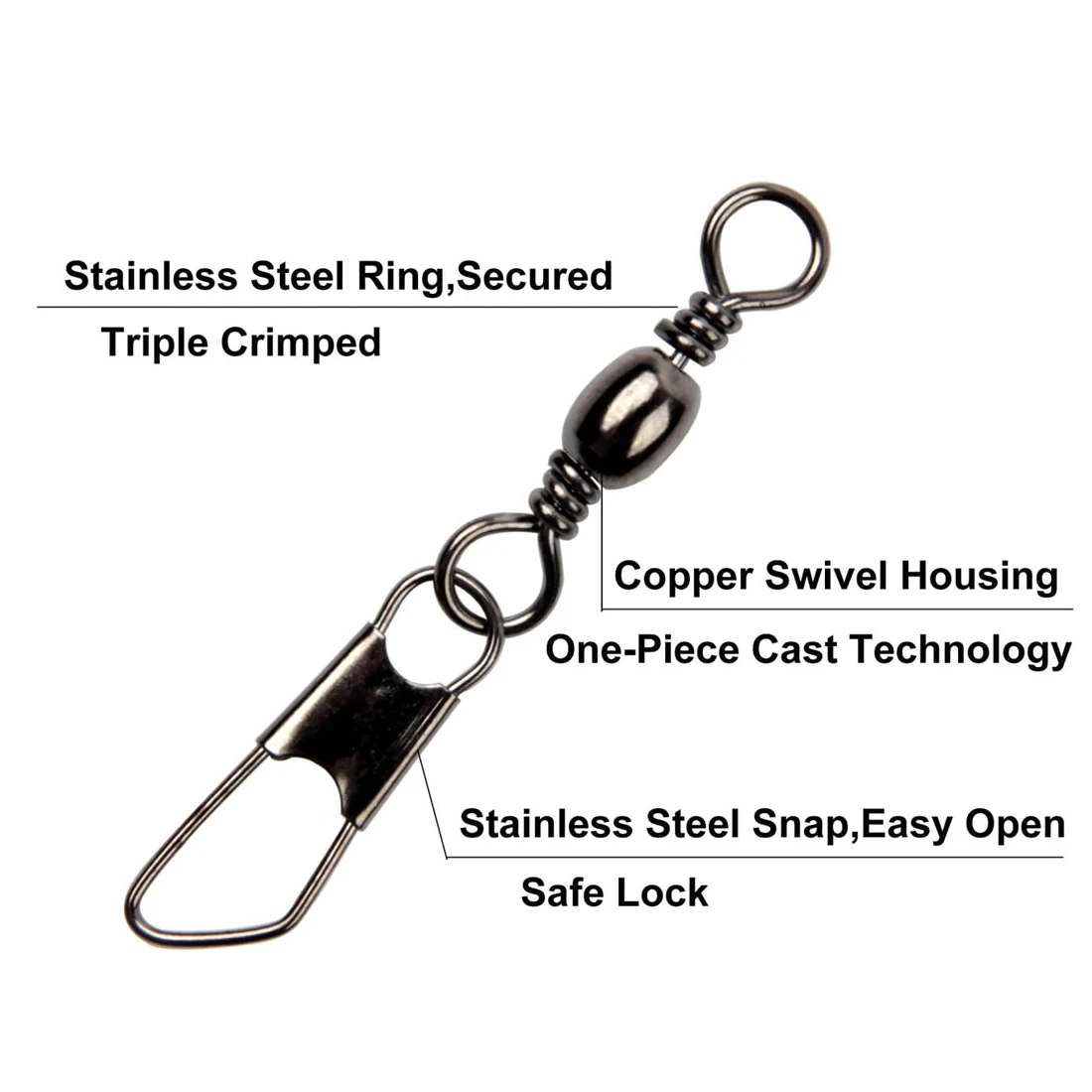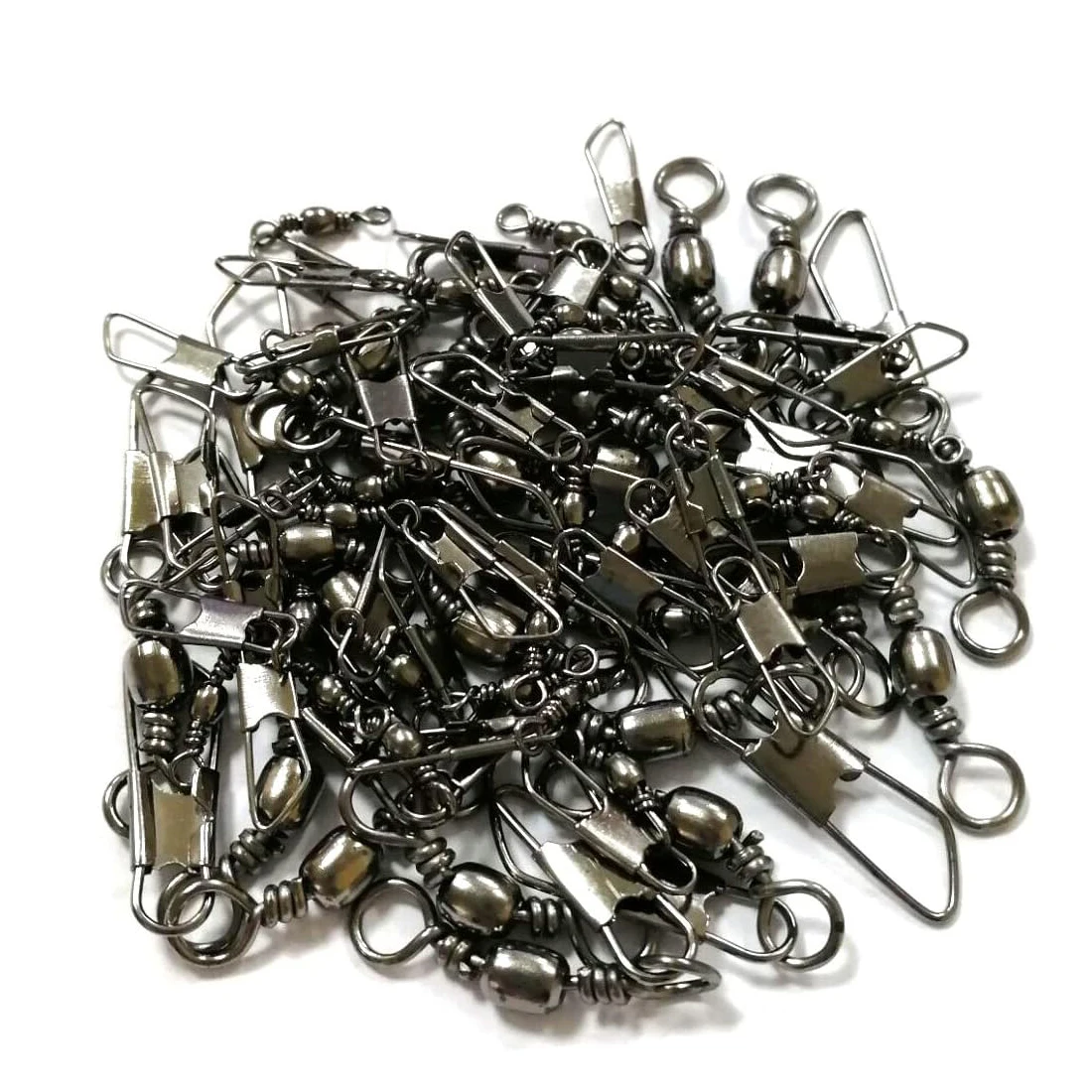 30 Uds barril de pesca giratorio con bonito conector de línea de señuelo de pesca de alta resistencia anillos vendidos giratorios a presión aparejos de pesca