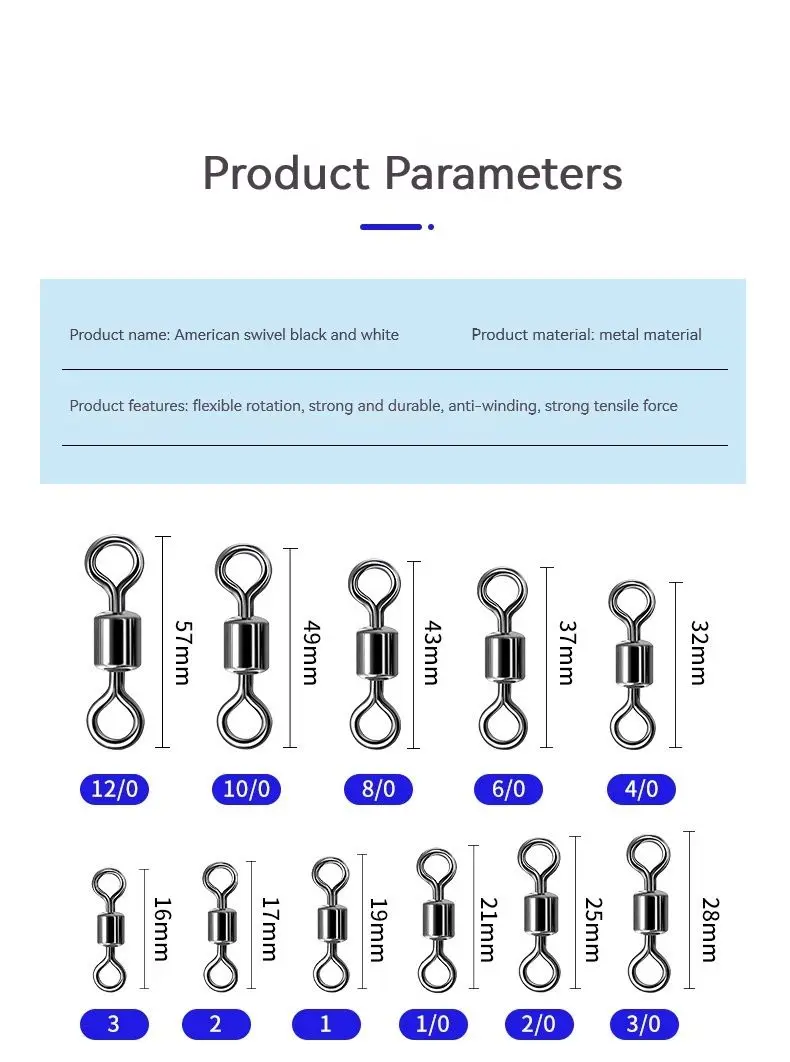 50 Uds. De barril rodante de pesca, broche giratorio de acero inoxidable, Terminal de bagre, accesorios para aparejos para agua dulce y salada