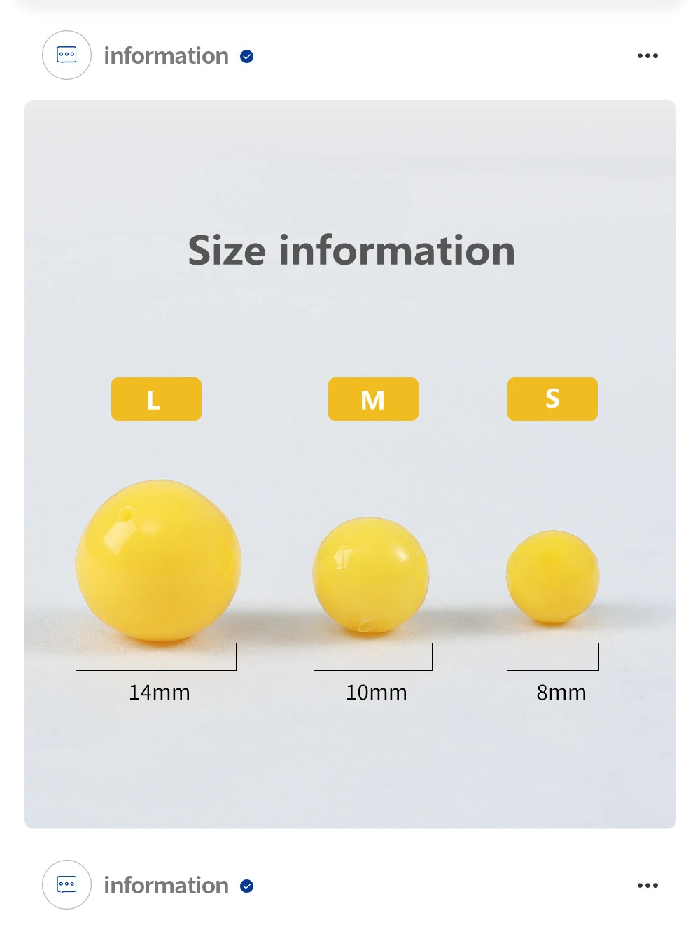 Especificaciones: Tamaño: diámetro 0,8 cm / 1 cm / 1,4 cm Material: TPR Característica: * Prácticos cebos artificiales con olor a maíz y carpa. * Diseño duradero para un uso prolongado. * Color brillante, alta visibilidad, gran flotabilidad. * Buena concentricidad para un mejor agarre y protección del hilo de pescar.