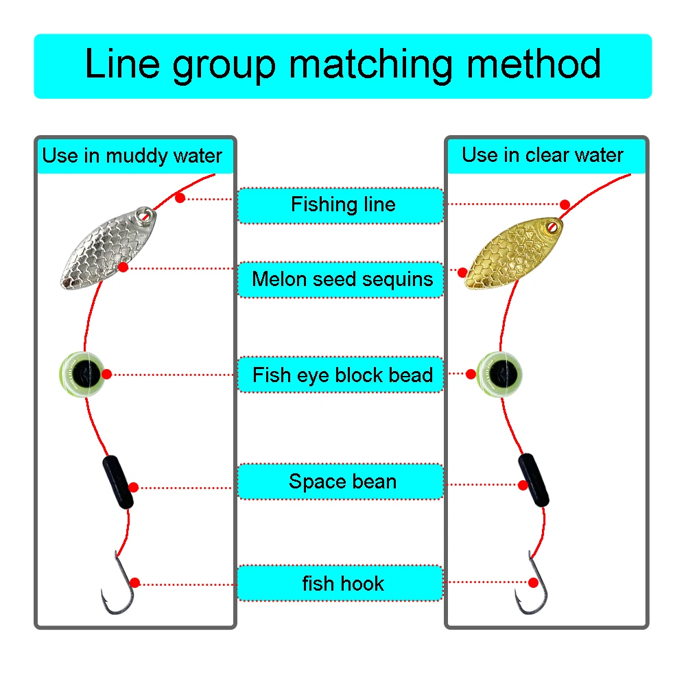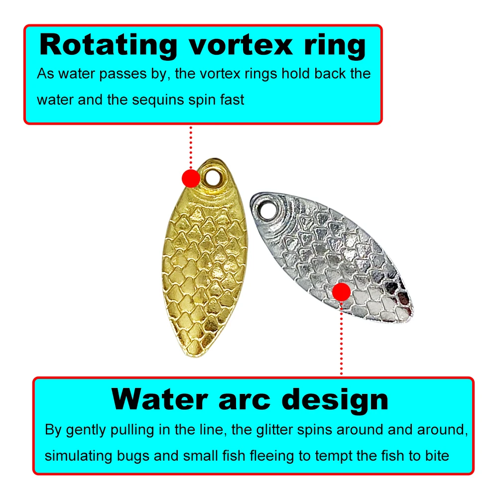3.Diseño de grano único, anillo de vórtice giratorio: el agua que fluye a través del anillo de vórtice puede hacer que la brillantina gire rápidamente, estimular la visión de los peces y atraer mejor la picadura del pez.