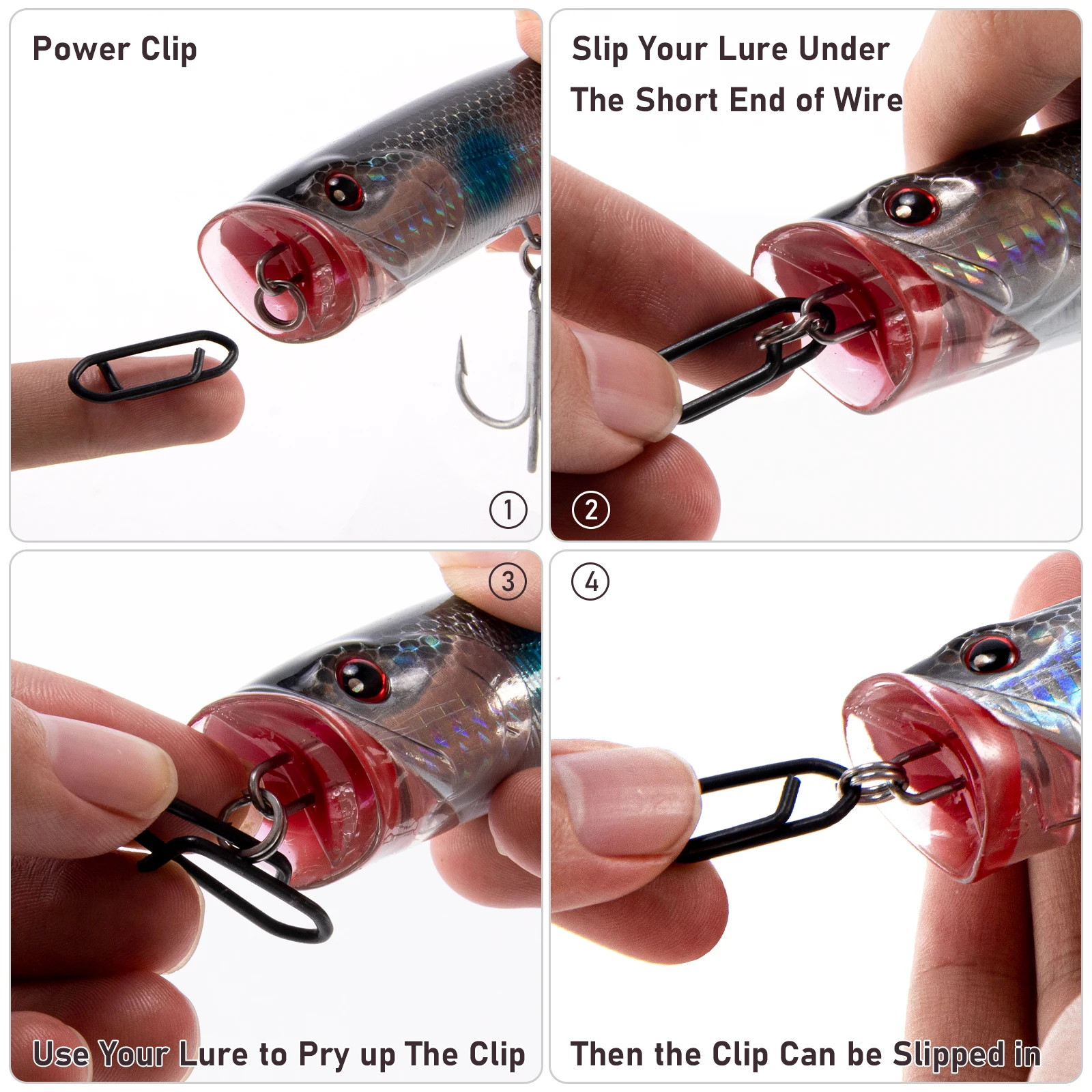 【Aplicación】Nuestros broches de pesca se pueden utilizar con varios tipos de señuelos, como crankbait, plug, swimbait, pececillo, popper, etc., para mantener el señuelo en su movimiento más natural.