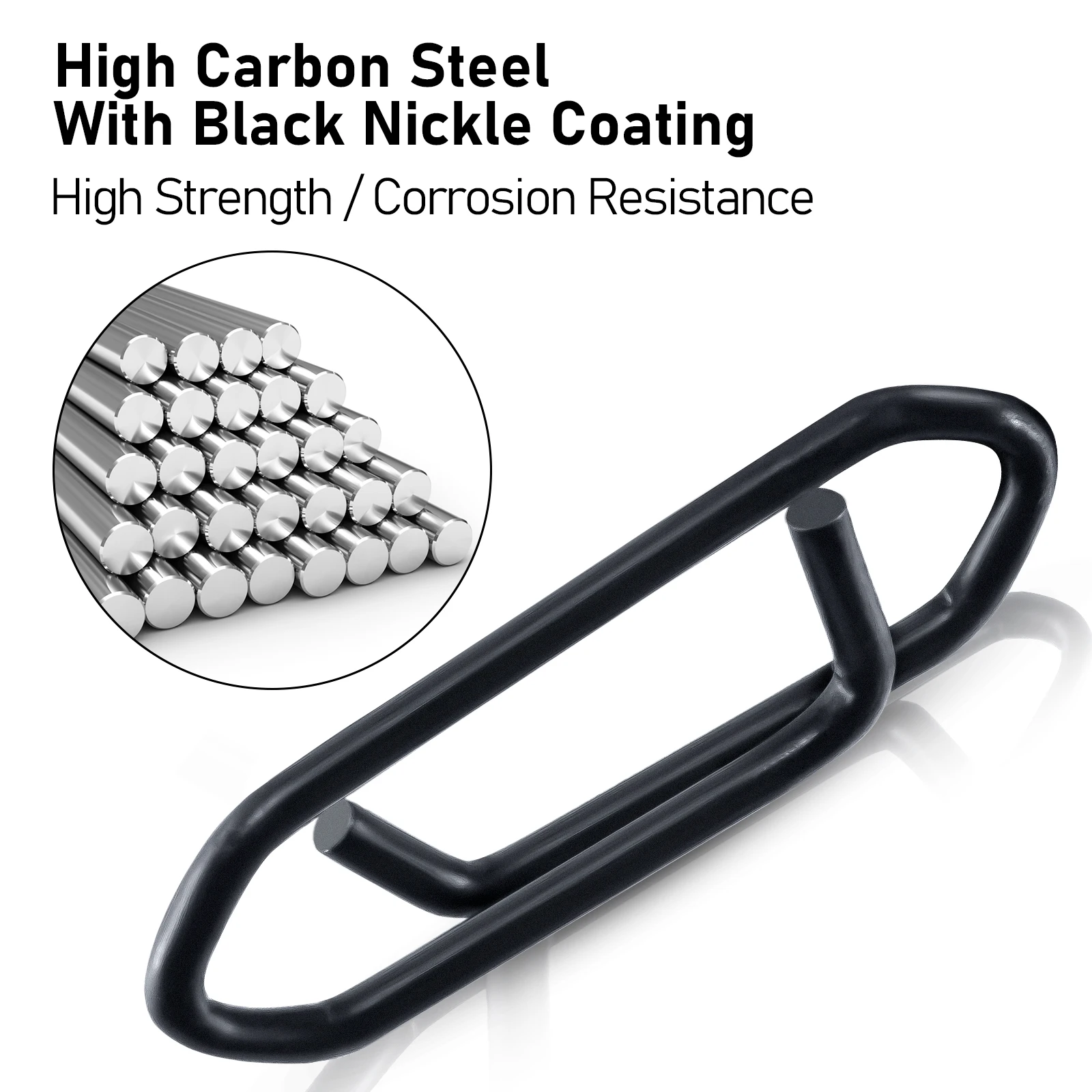 【Clips de pesca de alta calidad】Estos clips Speed de una sola pieza están hechos de acero con alto contenido de carbono de alta resistencia con pintura de níquel negro, con alta estabilidad, alta dureza, resistencia a la abrasión y resistencia a la corrosión.Adecuado para pesca en agua salada y dulce.