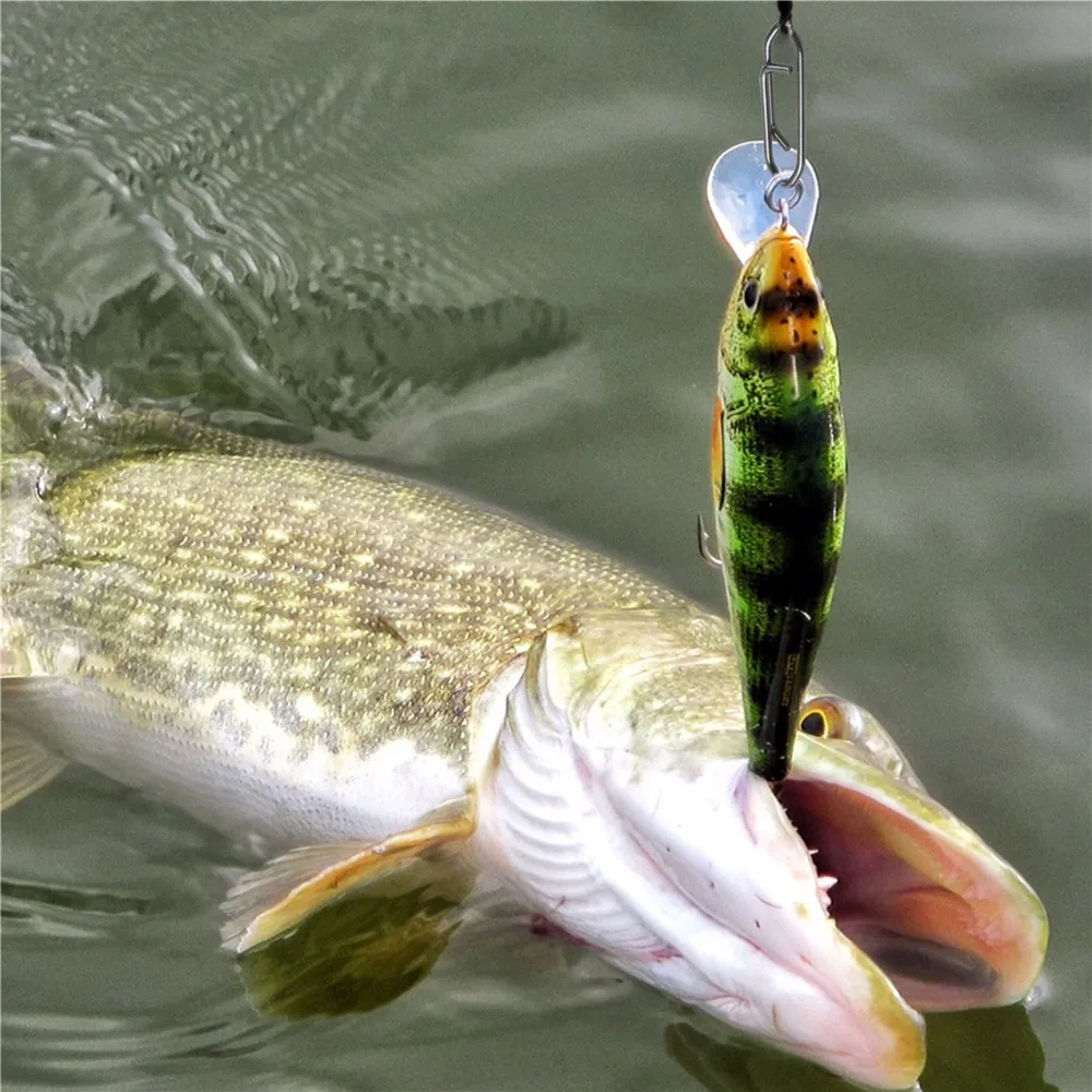 4.Nuestros broches de pesca se pueden utilizar con varios tipos de señuelos, como crankbait, tapón, swimbait, pececillo, popper. Cebo artificial en aparejos de accesorios de pesca con señuelos de agua salada/agua dulce.