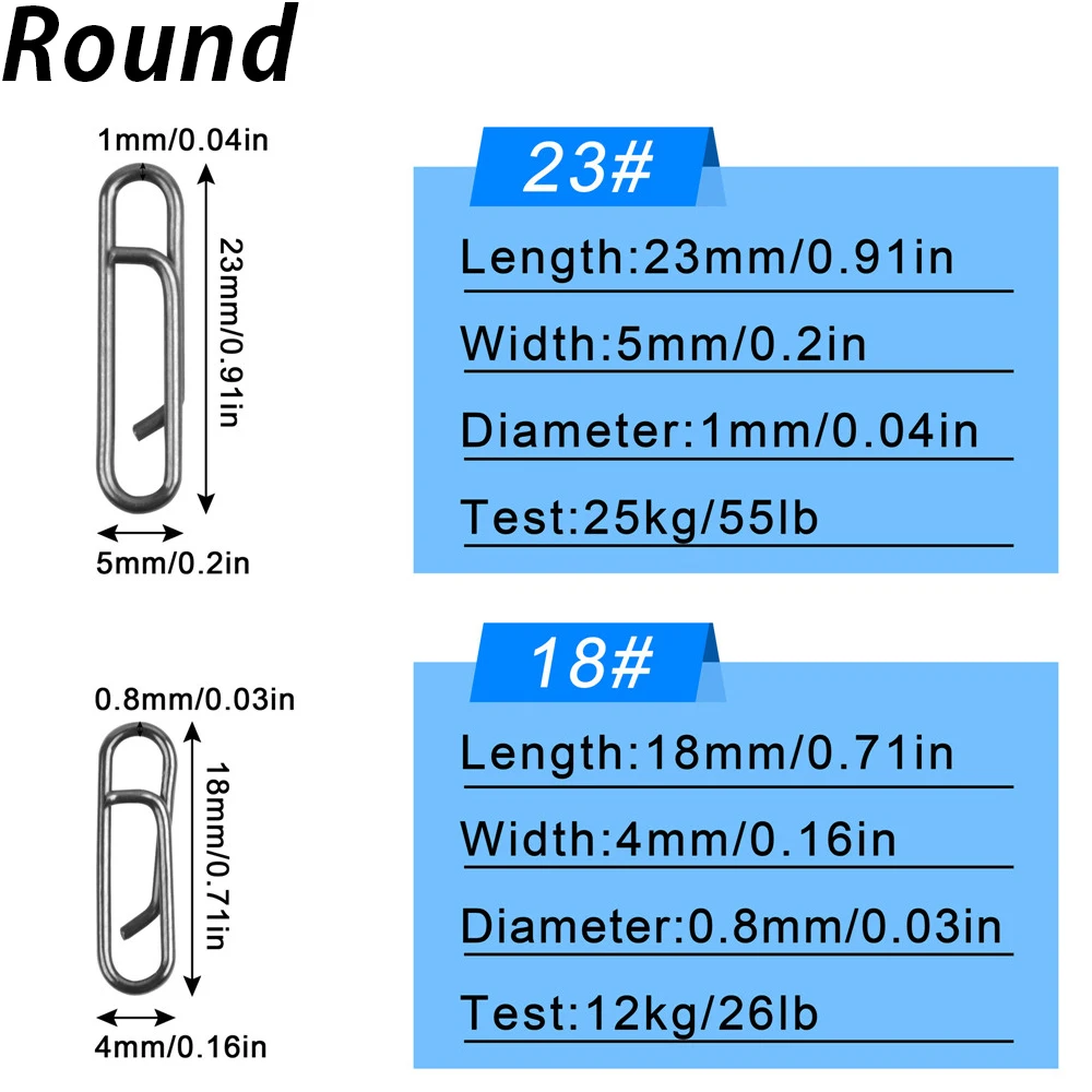 1.Los clips de pesca rápida están hechos de acero inoxidable de alta resistencia, con alta estabilidad, alta dureza, resistencia a la abrasión y resistencia a la corrosión.Adecuado para pesca en agua salada y dulce.