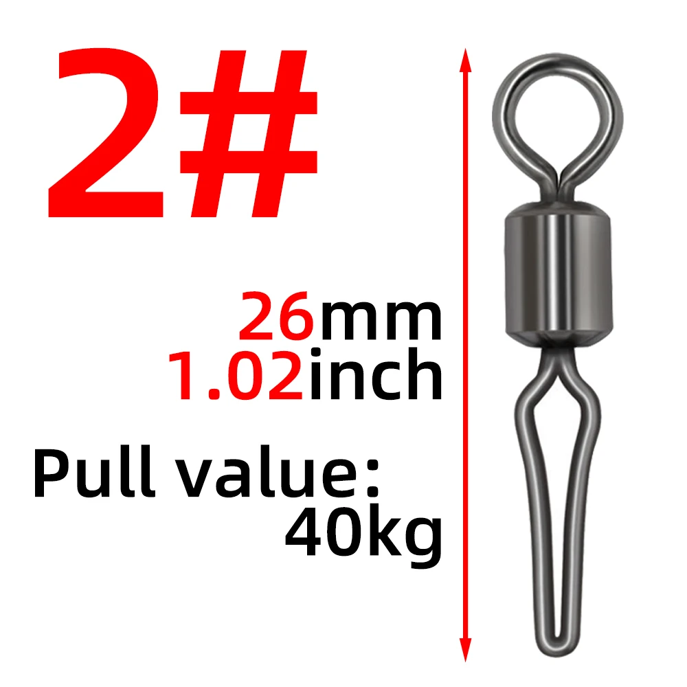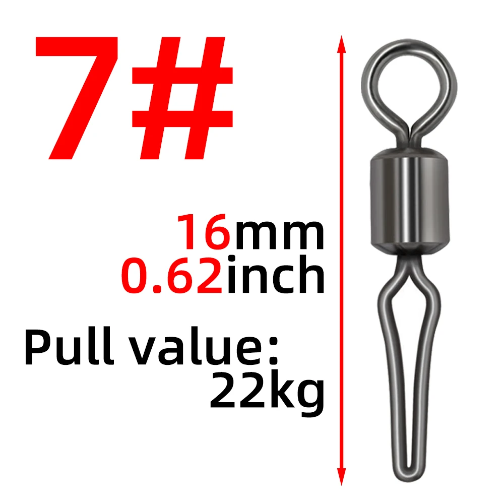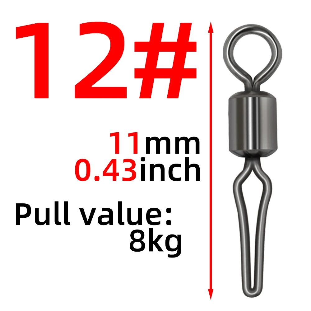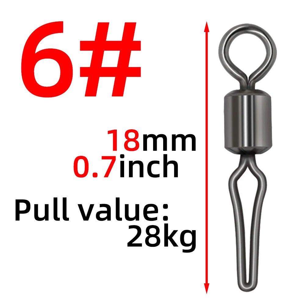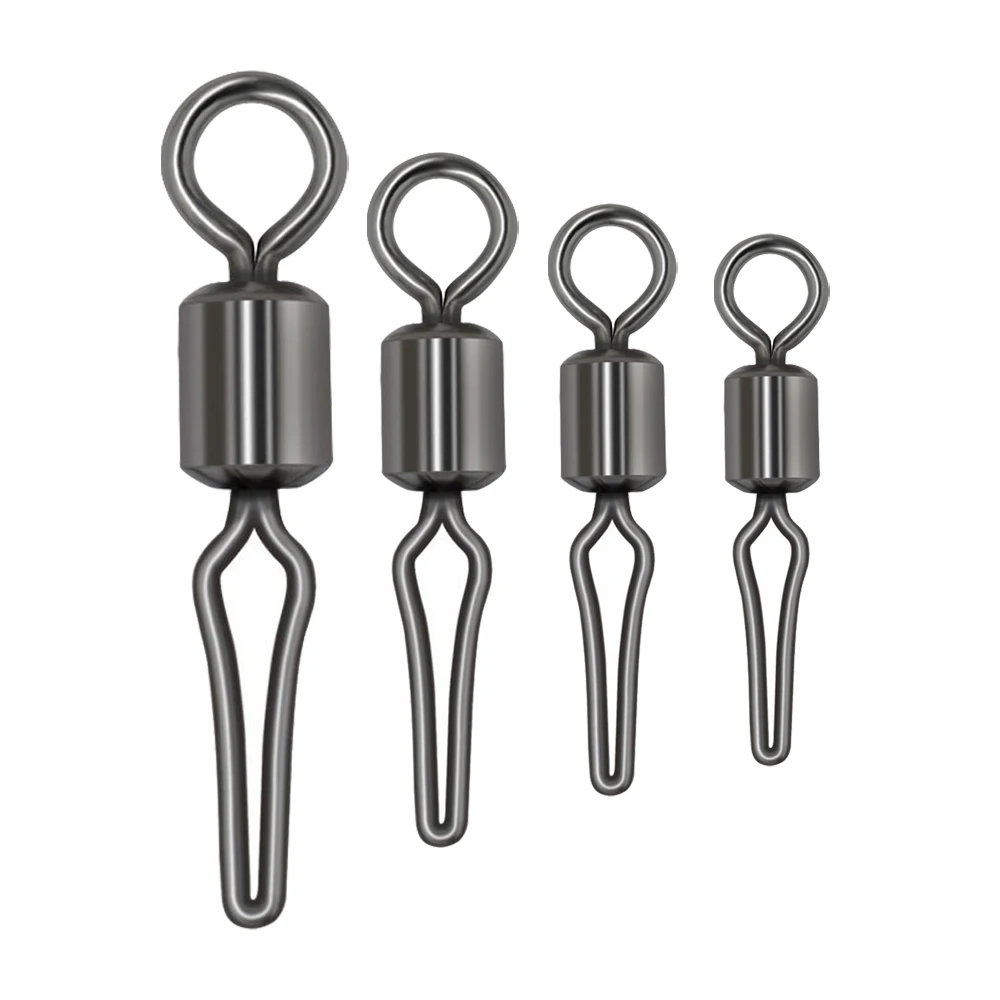 Usos:Se utiliza para conectar líneas de pesca y sublíneas, o cables de suspensión rápida y para conectar varios grupos de líneas.Reemplazo rápido, flexible 360° rotación, evitar enredos.