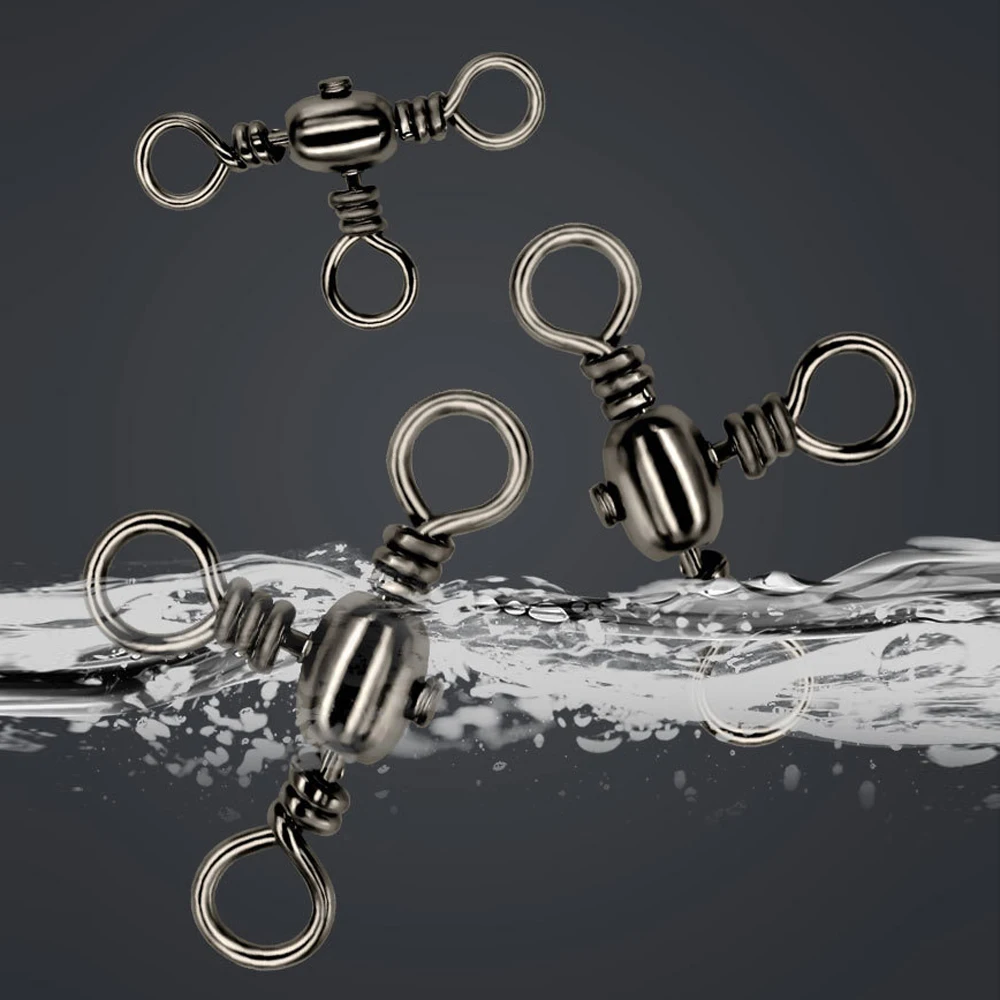 50 Uds. De conector de tres clavijas chapado en níquel negro de latón, divisor de sublínea giratorio en T, anillo Bazi para pesca al aire libre, accesorios de pesca