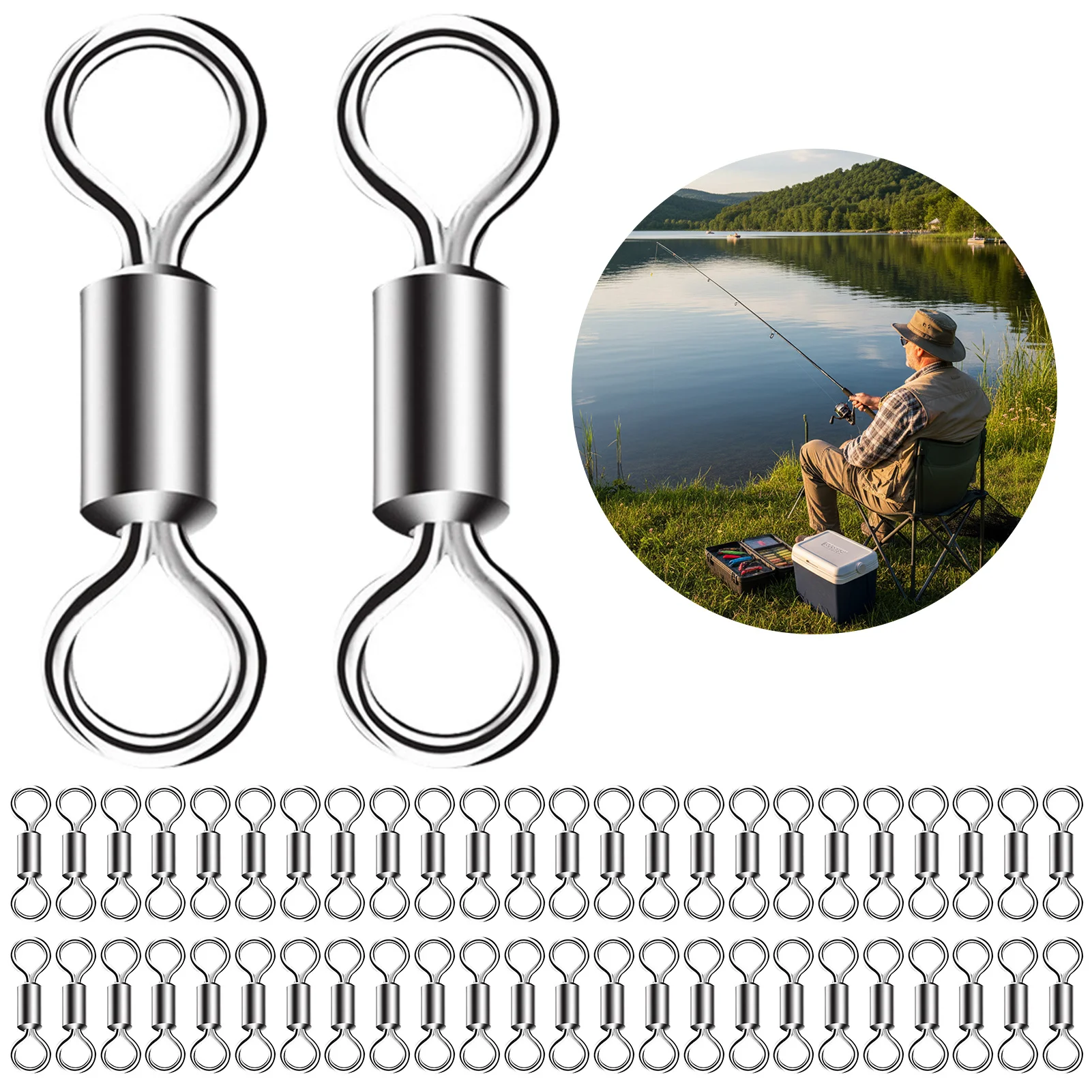 Diseño de ocho formas: el conector giratorio de pesca en forma de 8 permite una rotación suave y evita la torsión del sedal durante el lanzamiento y el lanzamiento, lo que garantiza un rendimiento constante en diversas condiciones de pesca.