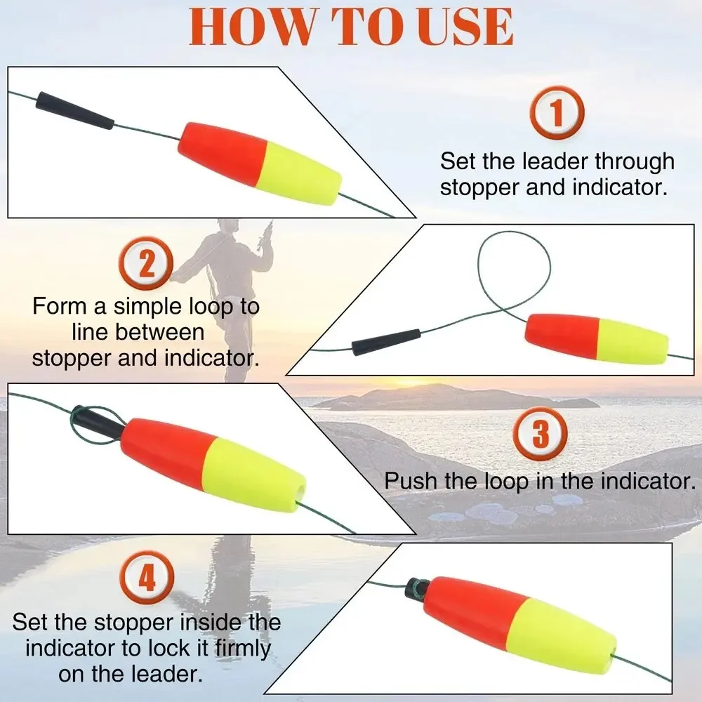 50 flotadores de pesca en una bolsa.