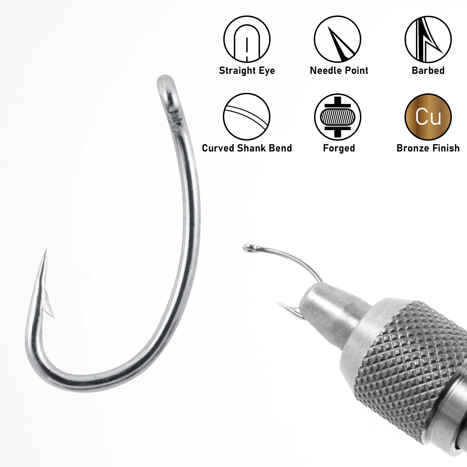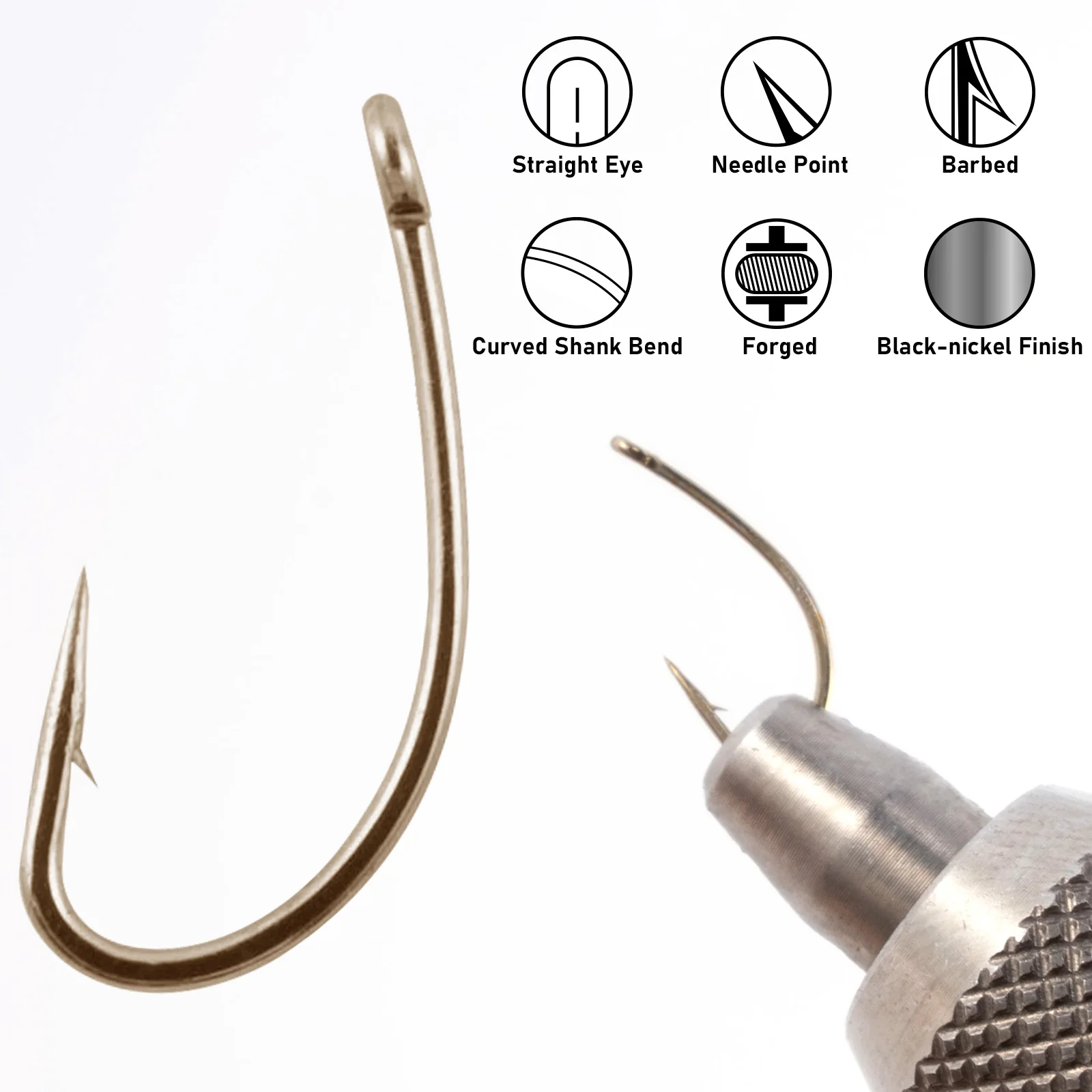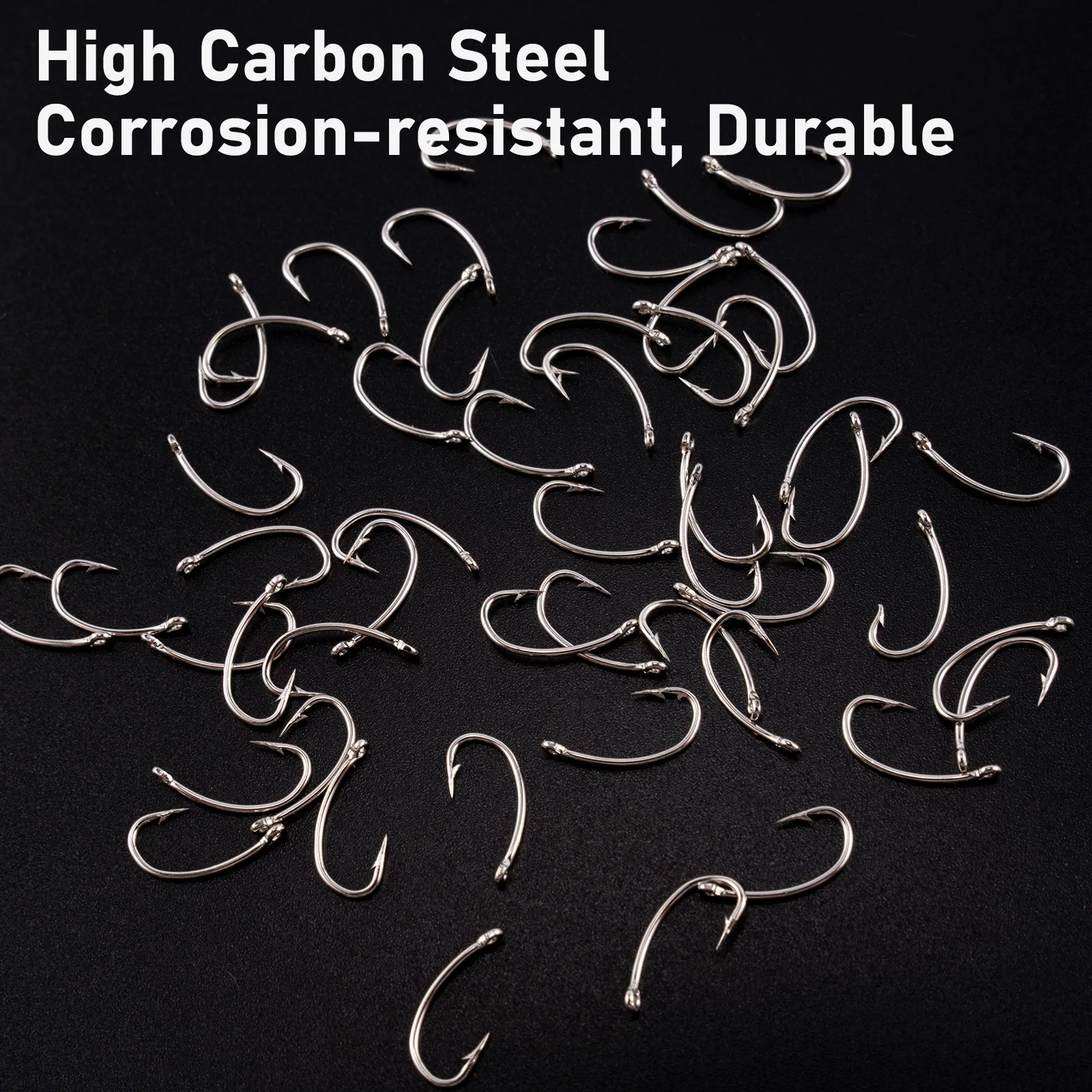 1. Hecho de acero con alto contenido de carbono, el anzuelo de pesca con mosca es duradero y resistente a la corrosión.Perfecto para la pesca en agua dulce y en agua salada.