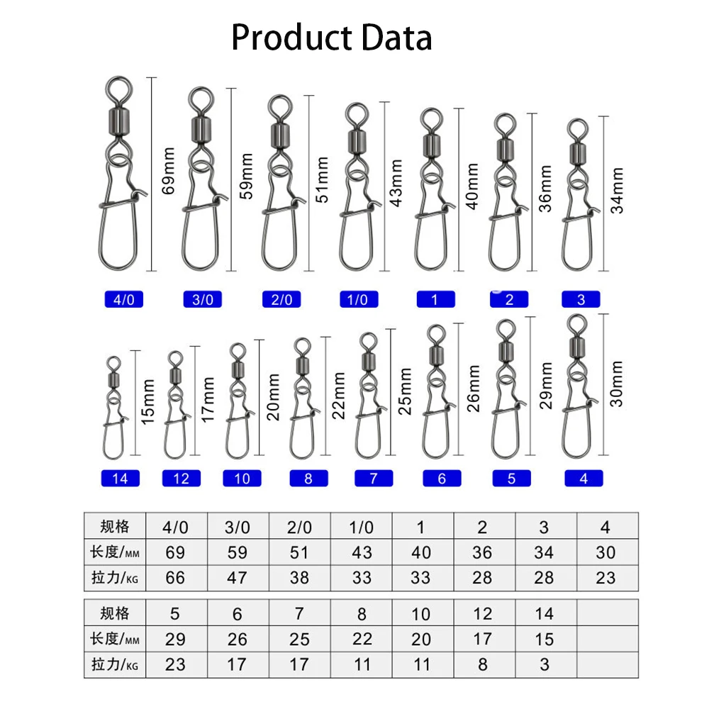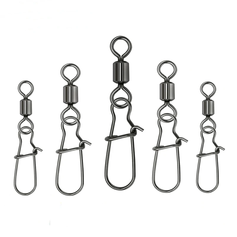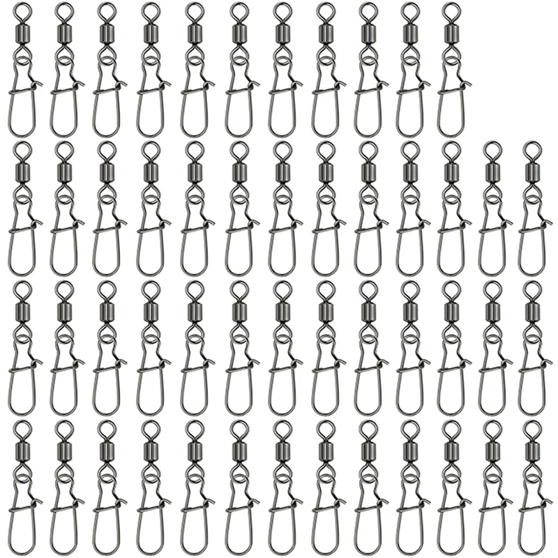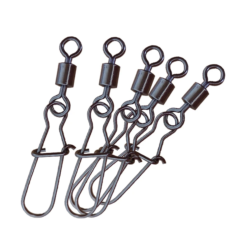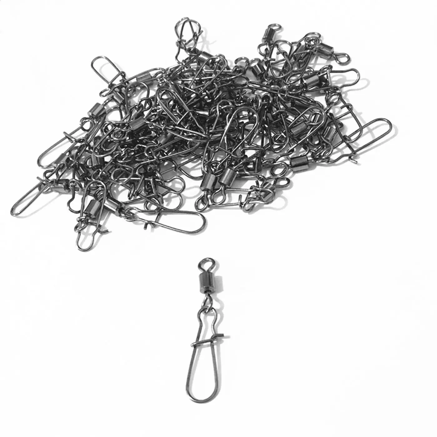 50 Uds. Giratorio de Pesca con Clip a presión, conector de línea de enclavamiento, anillo sólido, señuelo, anzuelo de Pesca de carpa, accesorios para aparejos de Pesca