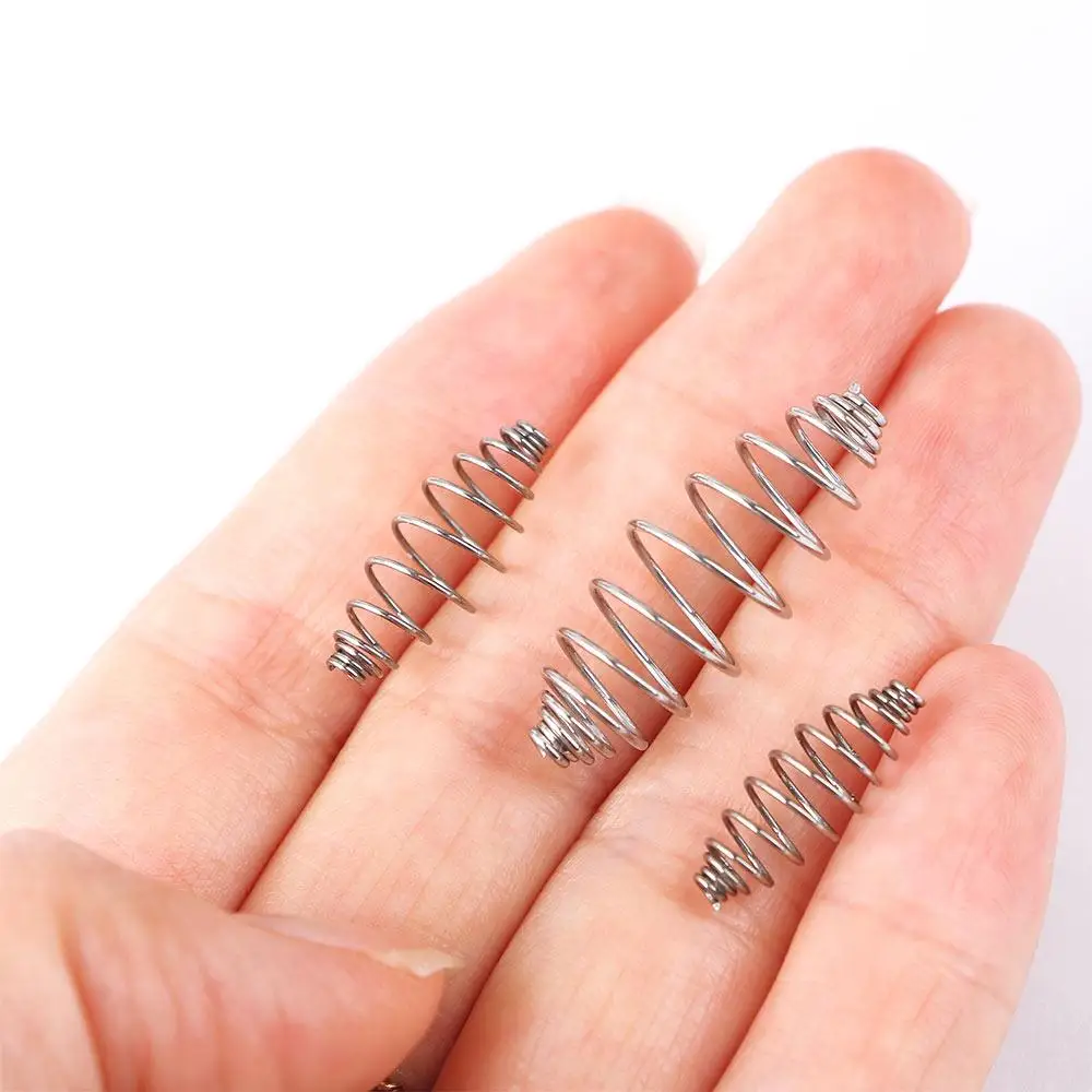 Material: Acero inoxidable Tamaño: S 10 mm de longitud; M 20 mm de longitud; L 30 mm de longitud. Color: como se muestra en las imágenes Aplicación: para hacer aparejos de carpa Paquete incluido: 50 piezas * Jaula alimentadora de resorte de pesca. Nota: Medición manual del tamaño, permita una pequeña desviación.