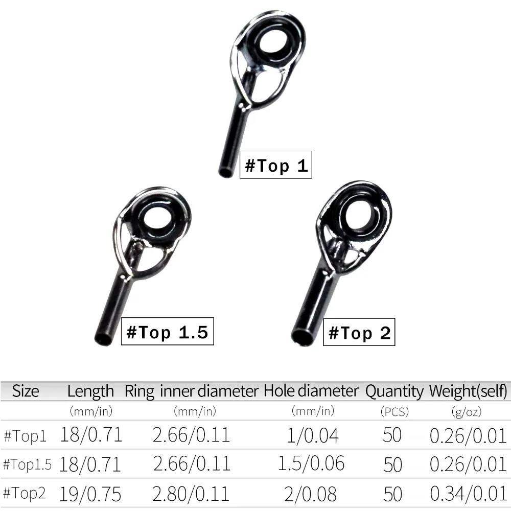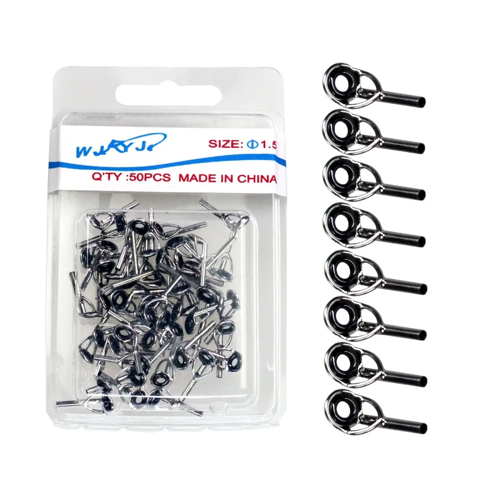 50 Uds. Kit de reparación de puntas de caña de pescar de 1mm, 1,5mm y 2mm, anillo de ojo de acero inoxidable y cerámica plateado, guías de caña de pescar, tapas de punta