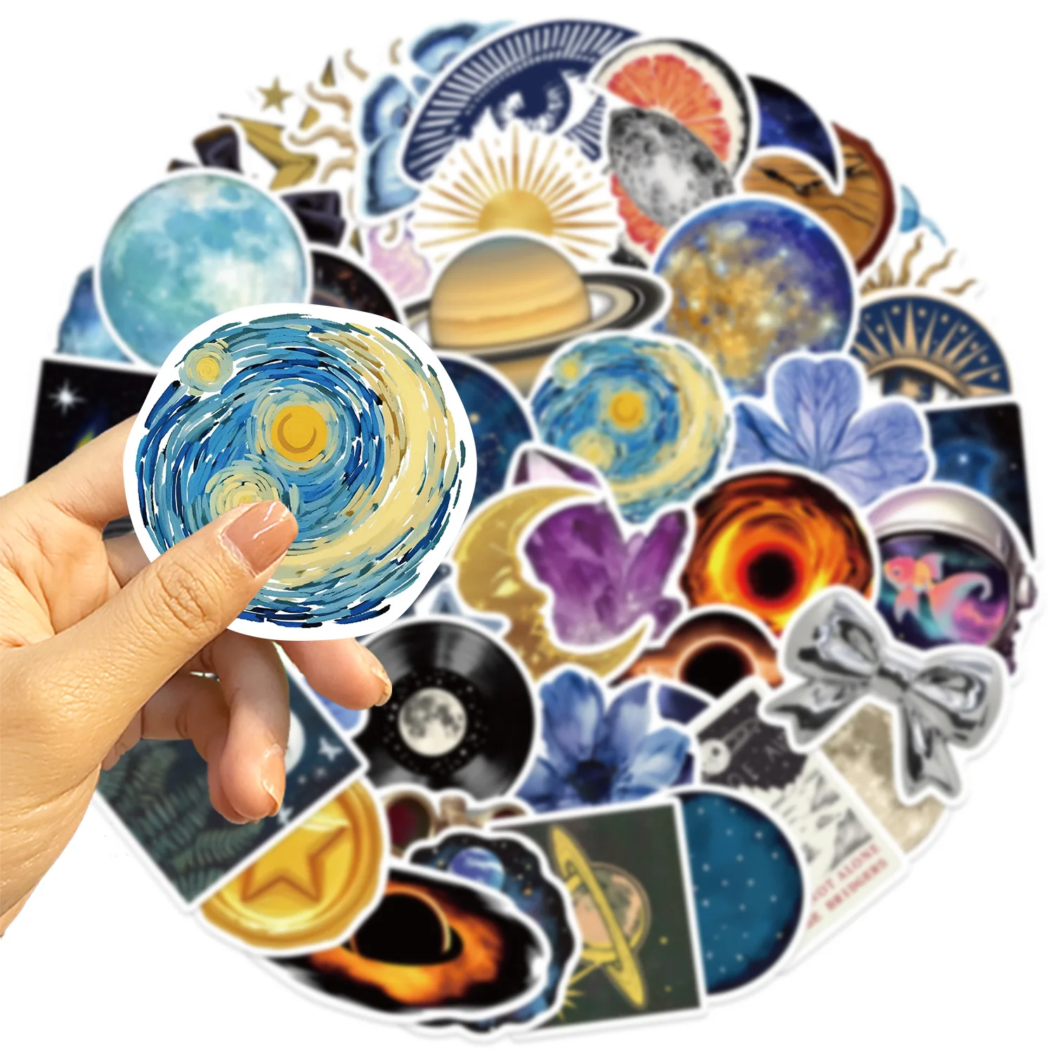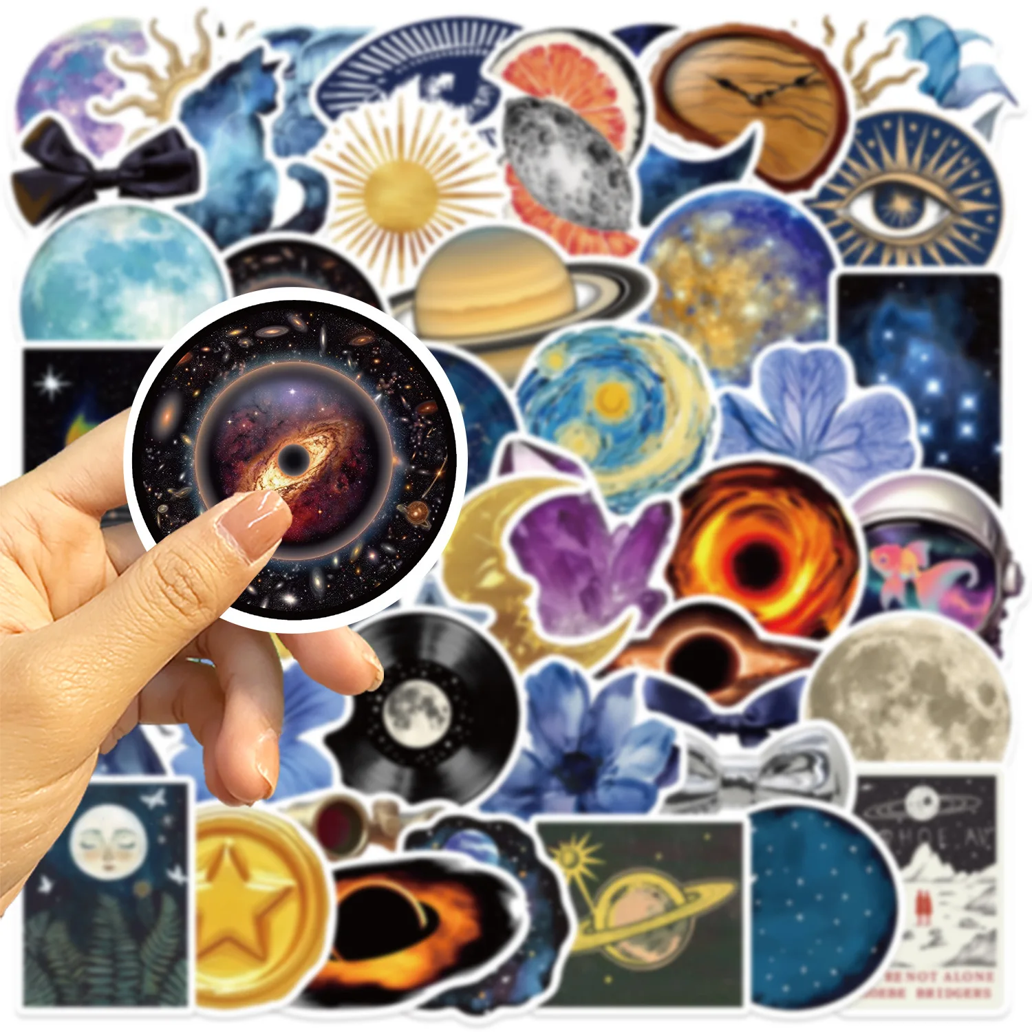 50 Uds. Pegatinas estéticas de arte del planeta del universo DIY teléfono guitarra portátil maleta taza pegatina impermeable juguetes para niños