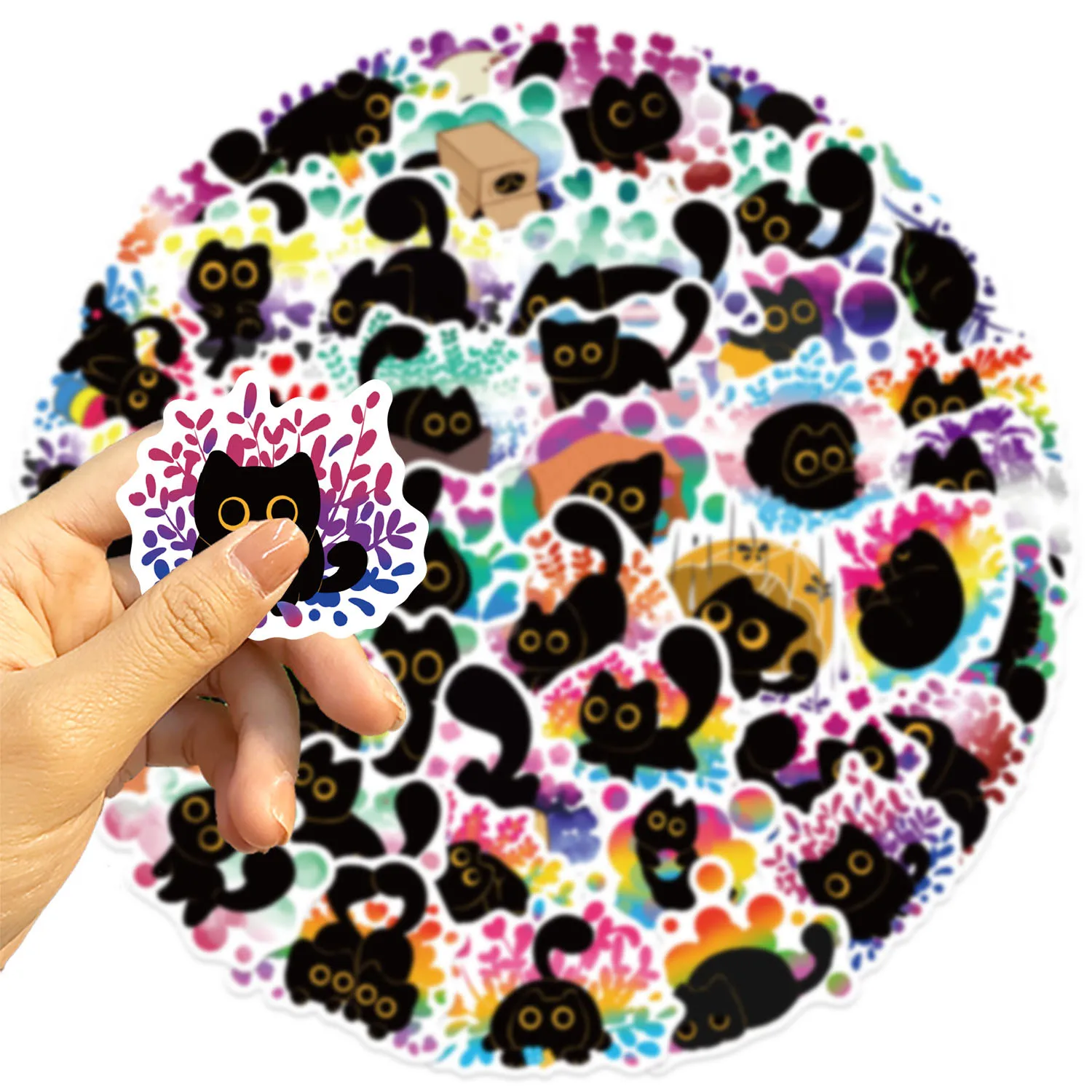 50 Uds. De pegatinas de grafiti de dibujos animados de animales de gato negro, pegatinas impermeables para teléfono, guitarra, portátil, maleta, taza, juguete para niños