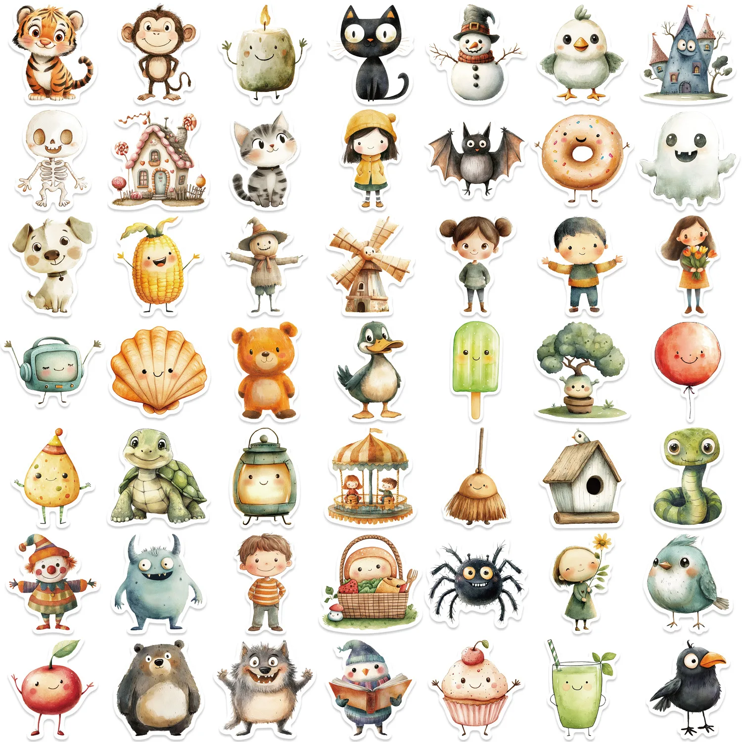 50 Uds. De pegatinas de grafiti de dibujos animados de animales minimalistas, teléfono, guitarra, portátil, maleta, tazas de agua, pegatina impermeable, juguete para niños