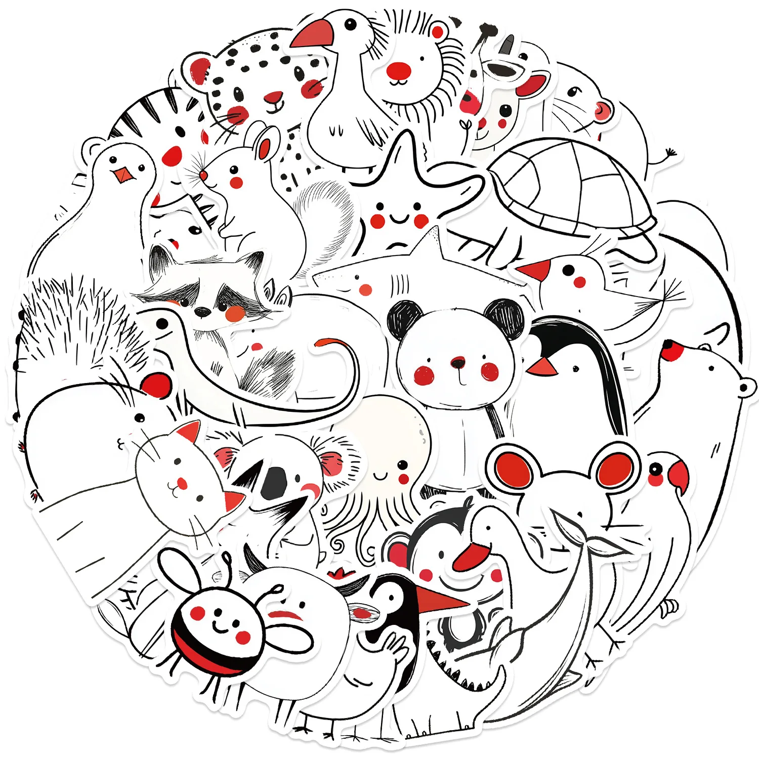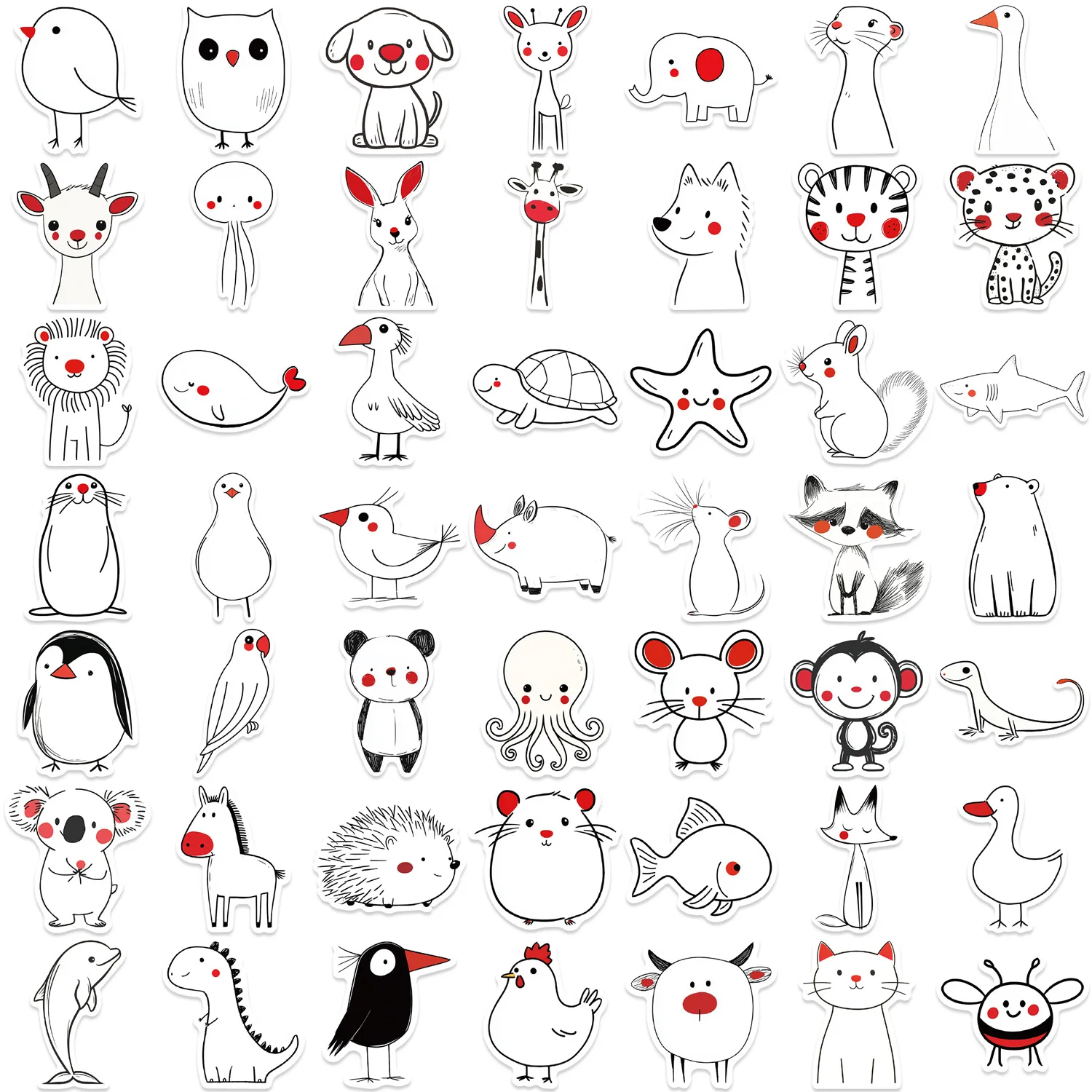 50 Uds. De pegatinas de grafiti de dibujos animados de animales simples, teléfono, guitarra, portátil, maleta, tazas de agua, pegatina impermeable, juguetes para niños