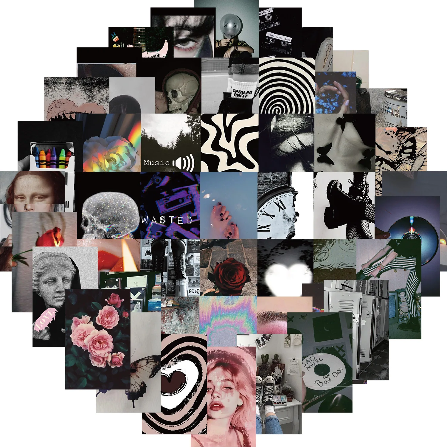 50 Uds. Pegatinas de grafiti de dibujos animados estilo Grunge INS negro DIY teléfono guitarra portátil maleta taza pegatina impermeable juguete para niños