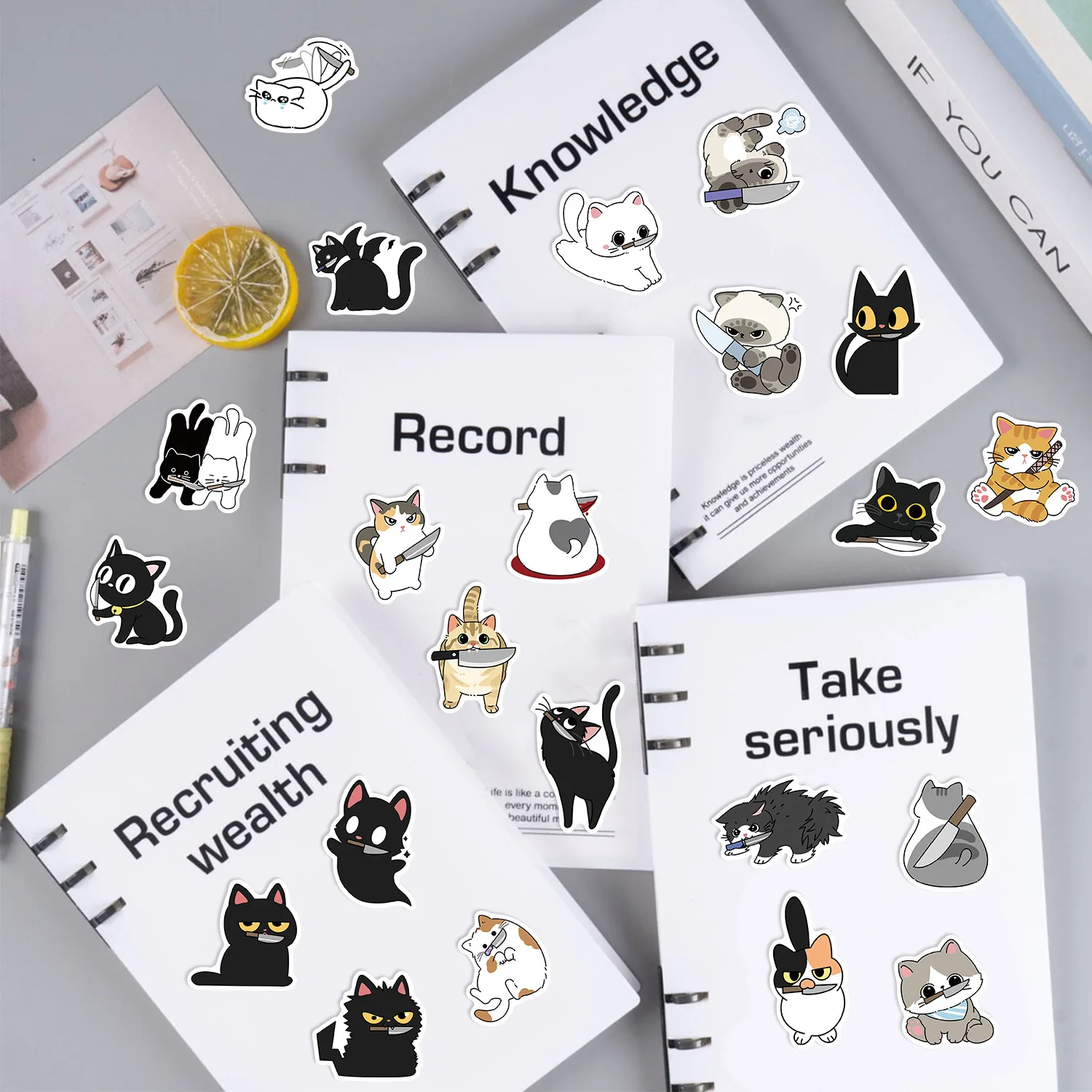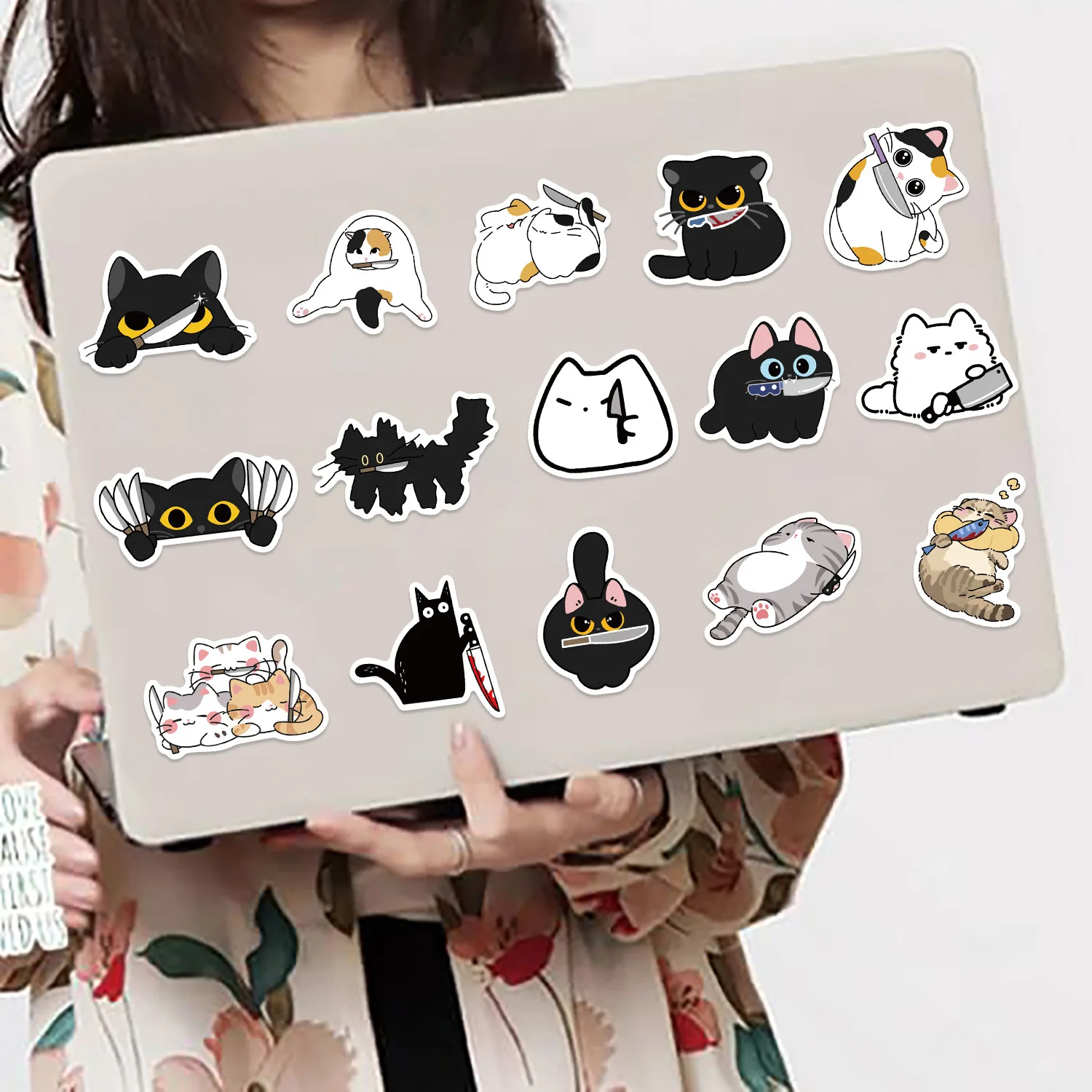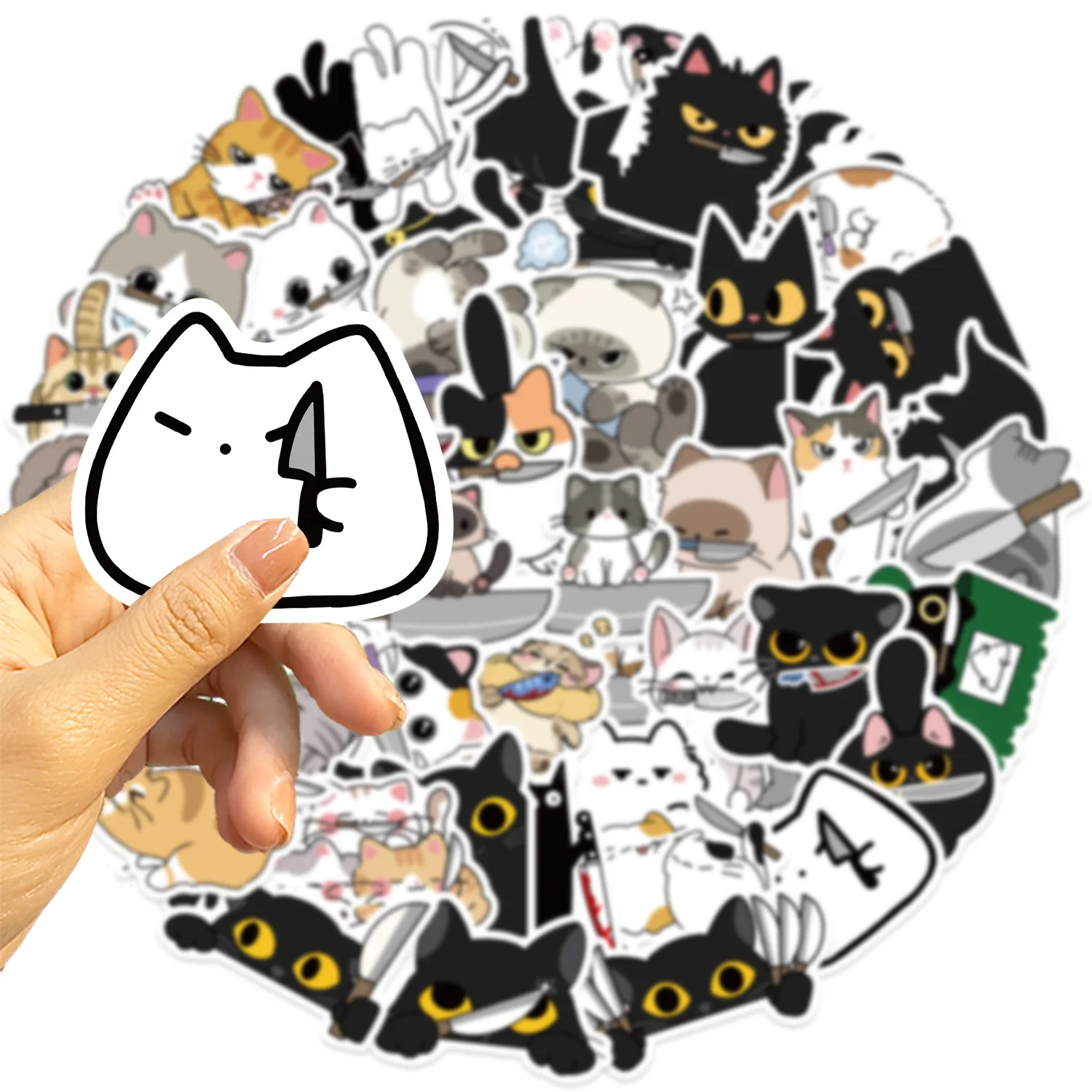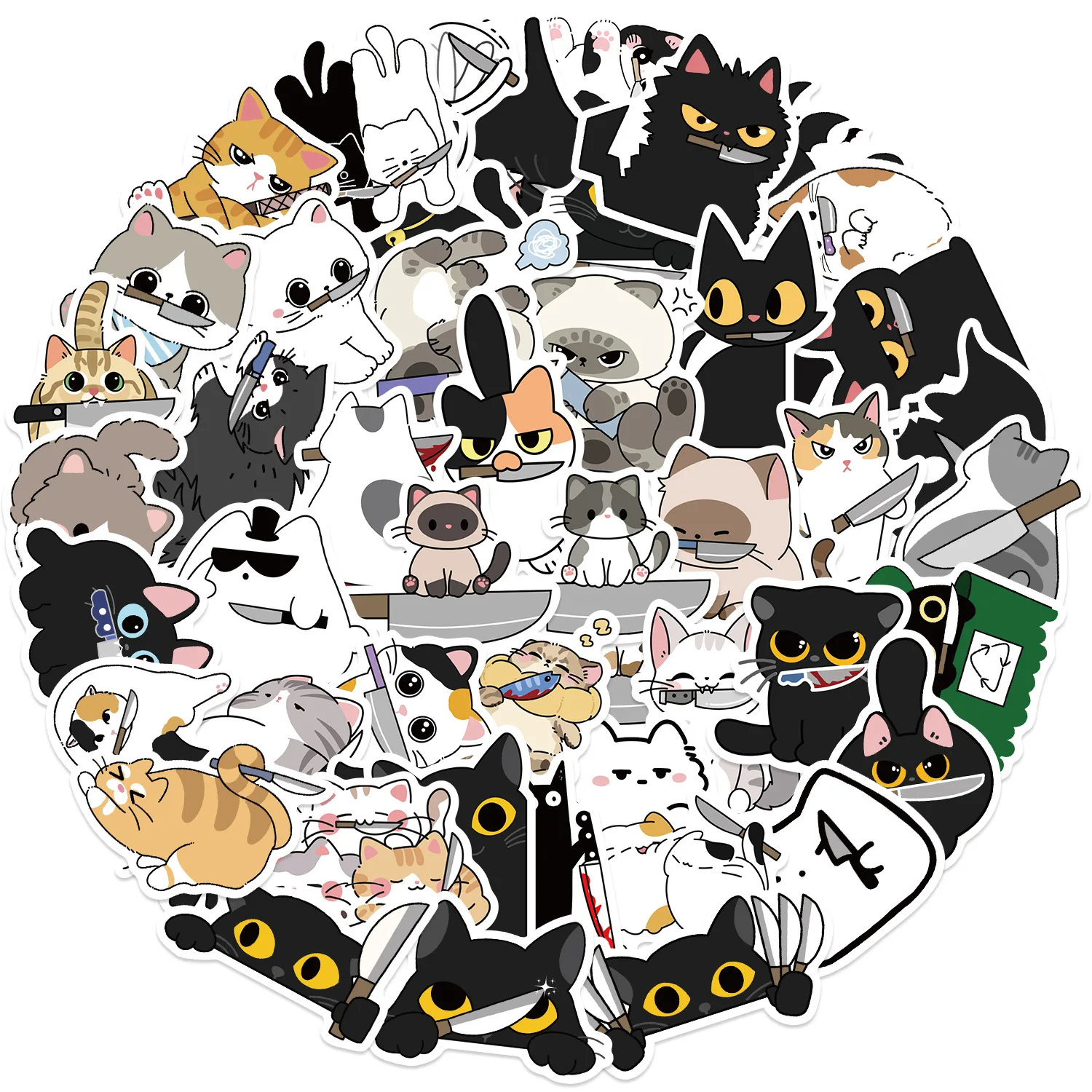 50 Uds. De pegatinas de grafiti de dibujos animados de gato con cuchillo, teléfono, guitarra, portátil, maleta, botellas de agua, pegatina impermeable, juguete para niños