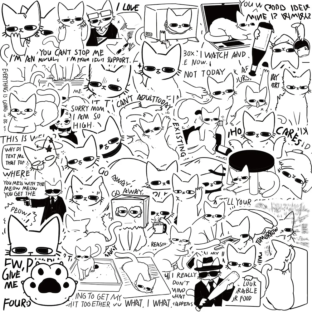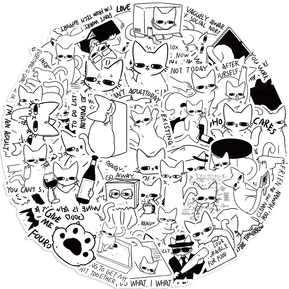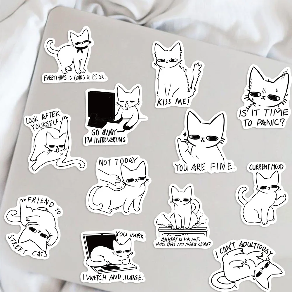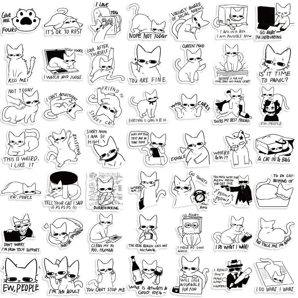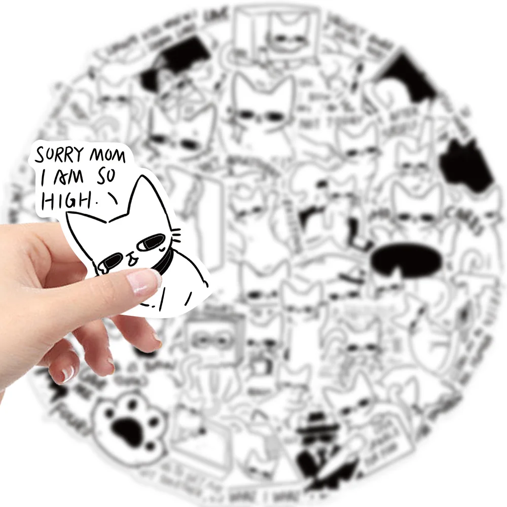 50 Uds. De pegatinas de grafiti de dibujos animados MEME de gato blanco y negro, bricolaje, teléfono, portátil, maleta, pegatina impermeable, juguetes para niños, regalos