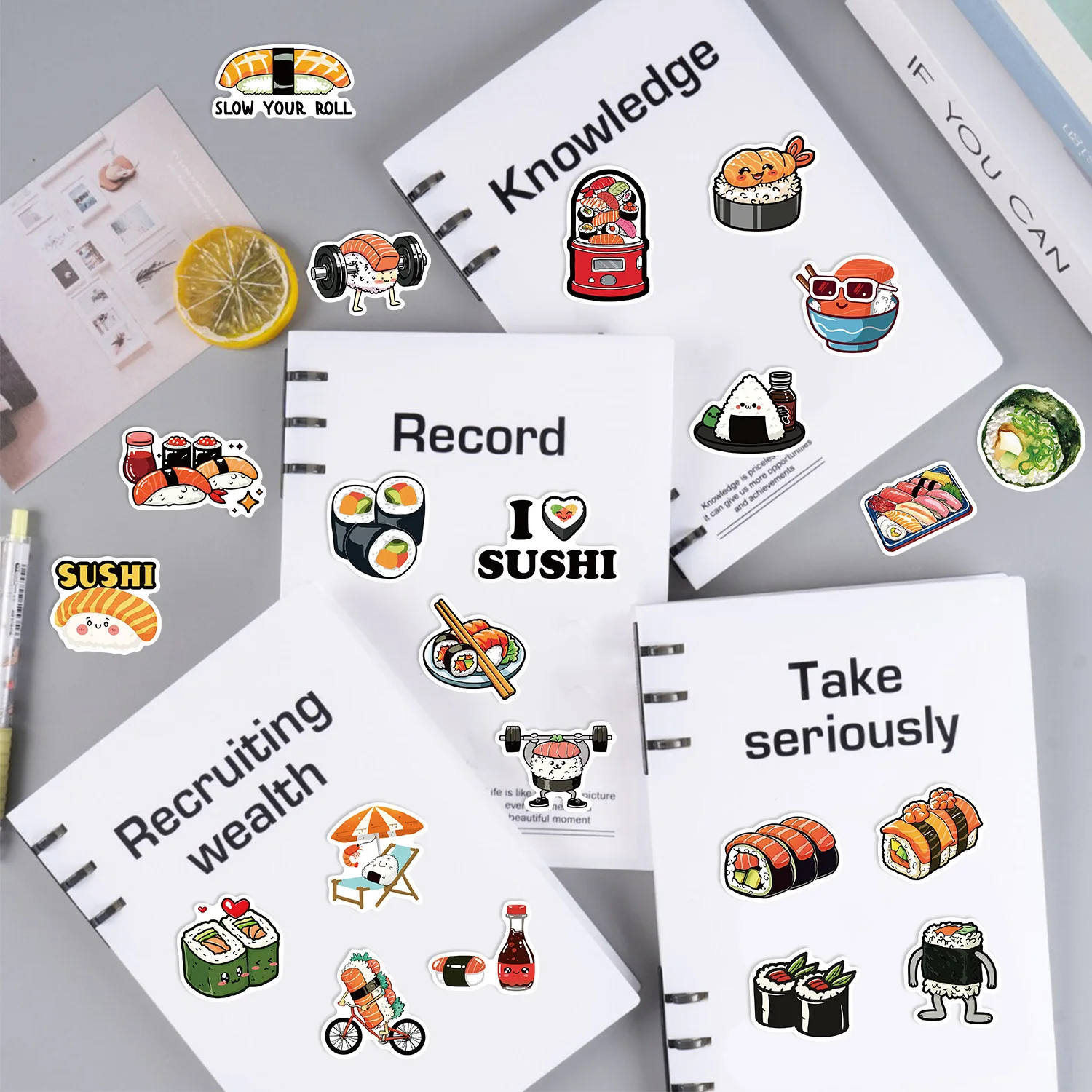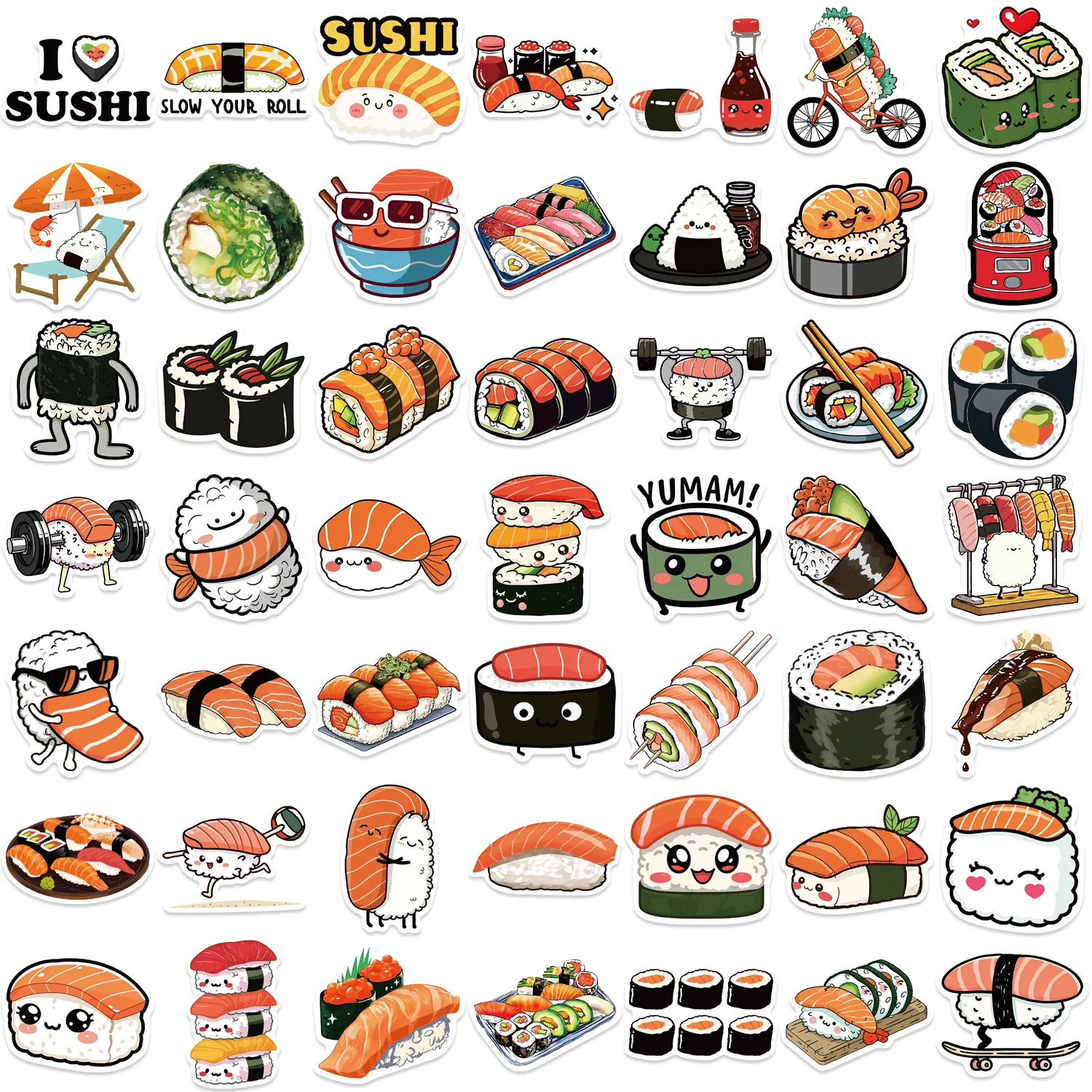 50 Uds. De pegatinas de grafiti de dibujos animados de Sushi, teléfono, guitarra, portátil, maleta, tazas de agua, pegatina impermeable, juguetes para niños