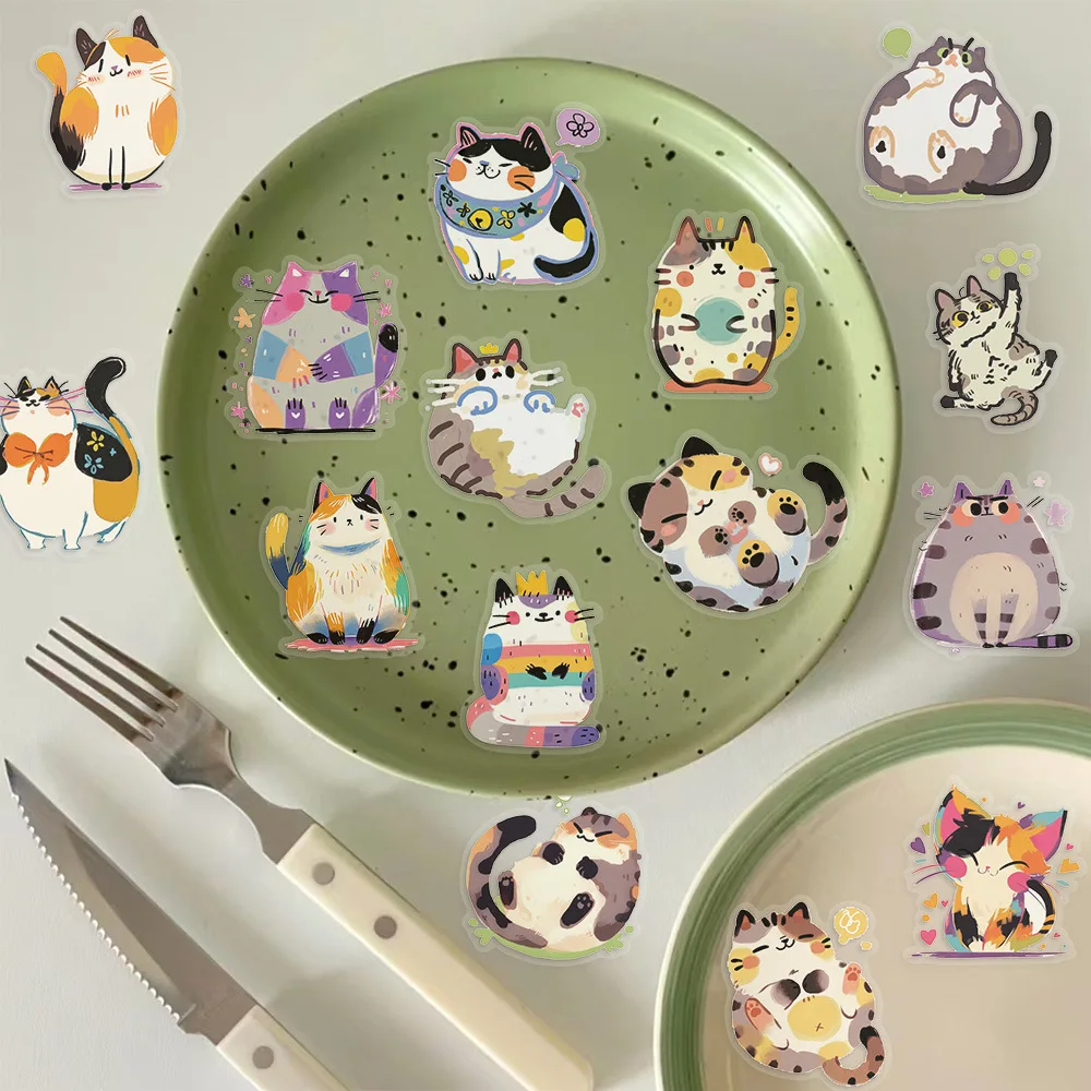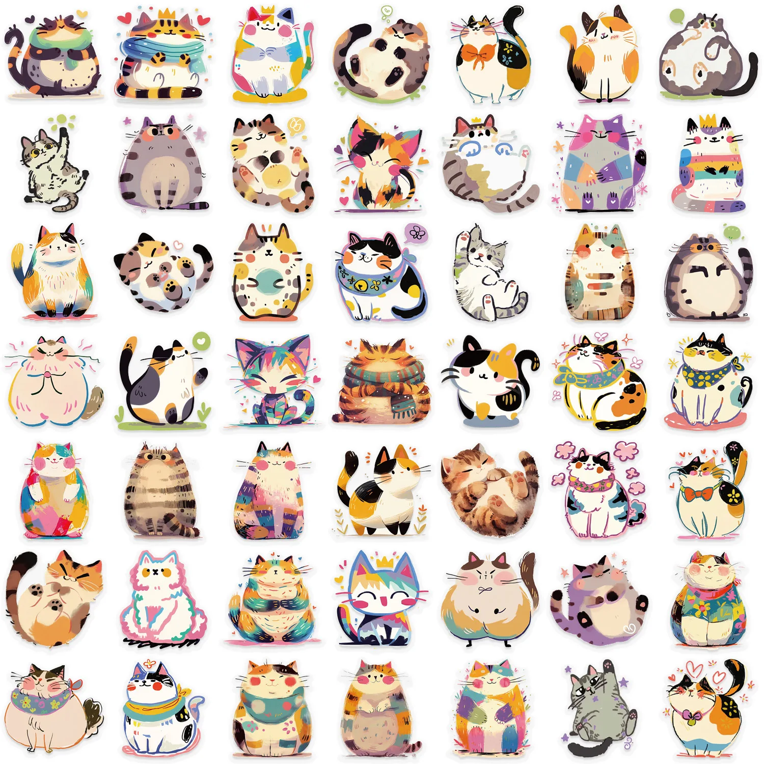 50 Uds. De pegatinas de grafiti de dibujos animados transparentes de gatos bonitos para teléfono, guitarra, portátil, maleta para portátil, pegatinas impermeables