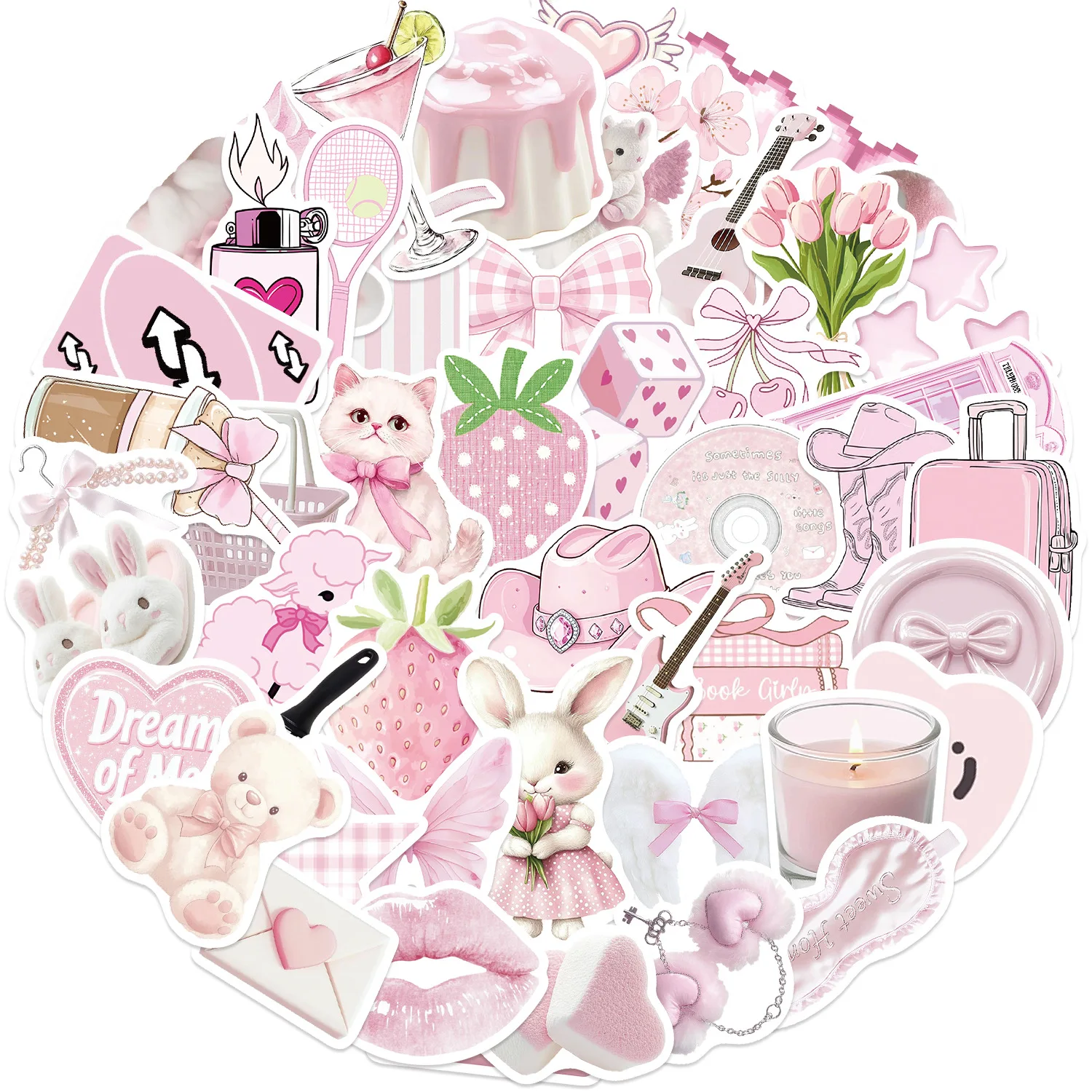 50 Uds. De pegatinas de grafiti de estética de arte rosa, bricolaje, teléfono, guitarra, portátil, maleta, taza, pegatinas impermeables