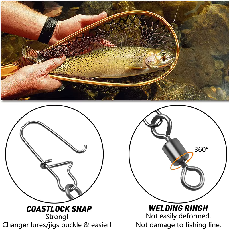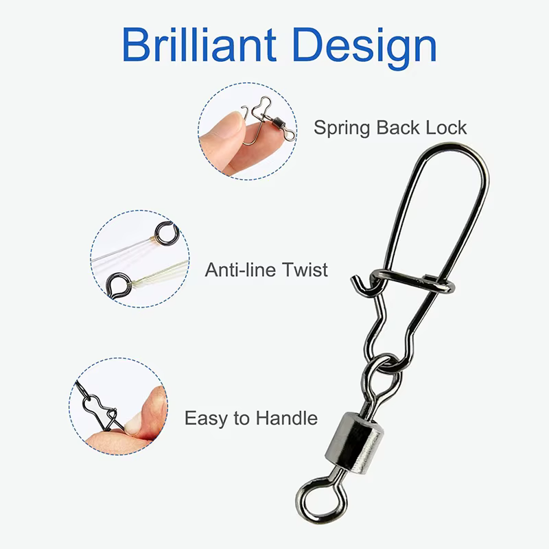 50 Uds Pike conector de pesca de acero inoxidable Pin anzuelo rodamiento giratorio Snap para señuelo accesorios de aparejos de pesca