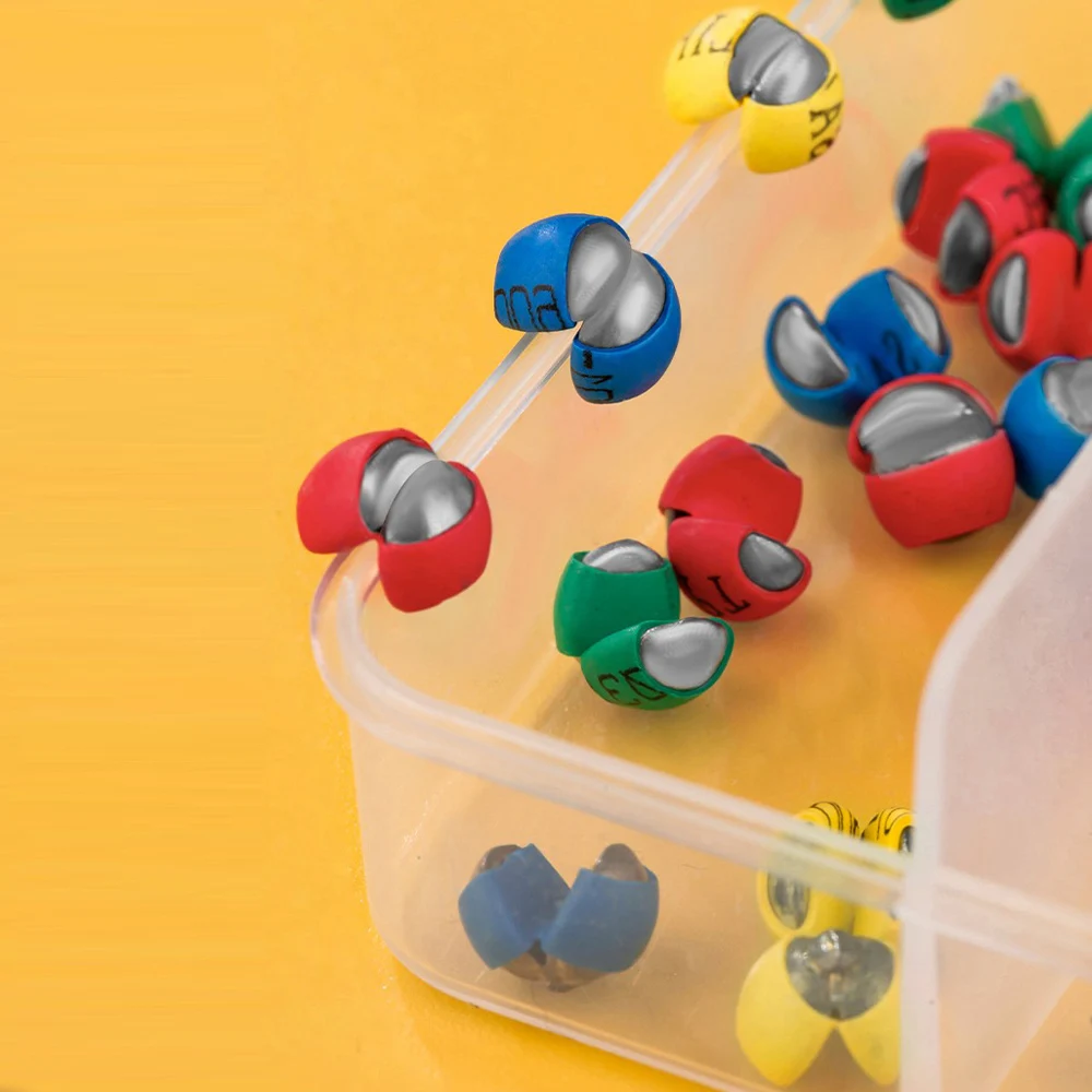 50 Uds. Plomo de peso de pesca con goma, línea NO HURT, plomos divididos, plomos de garra rápida, gusano, fácil extracción con caja colorida
