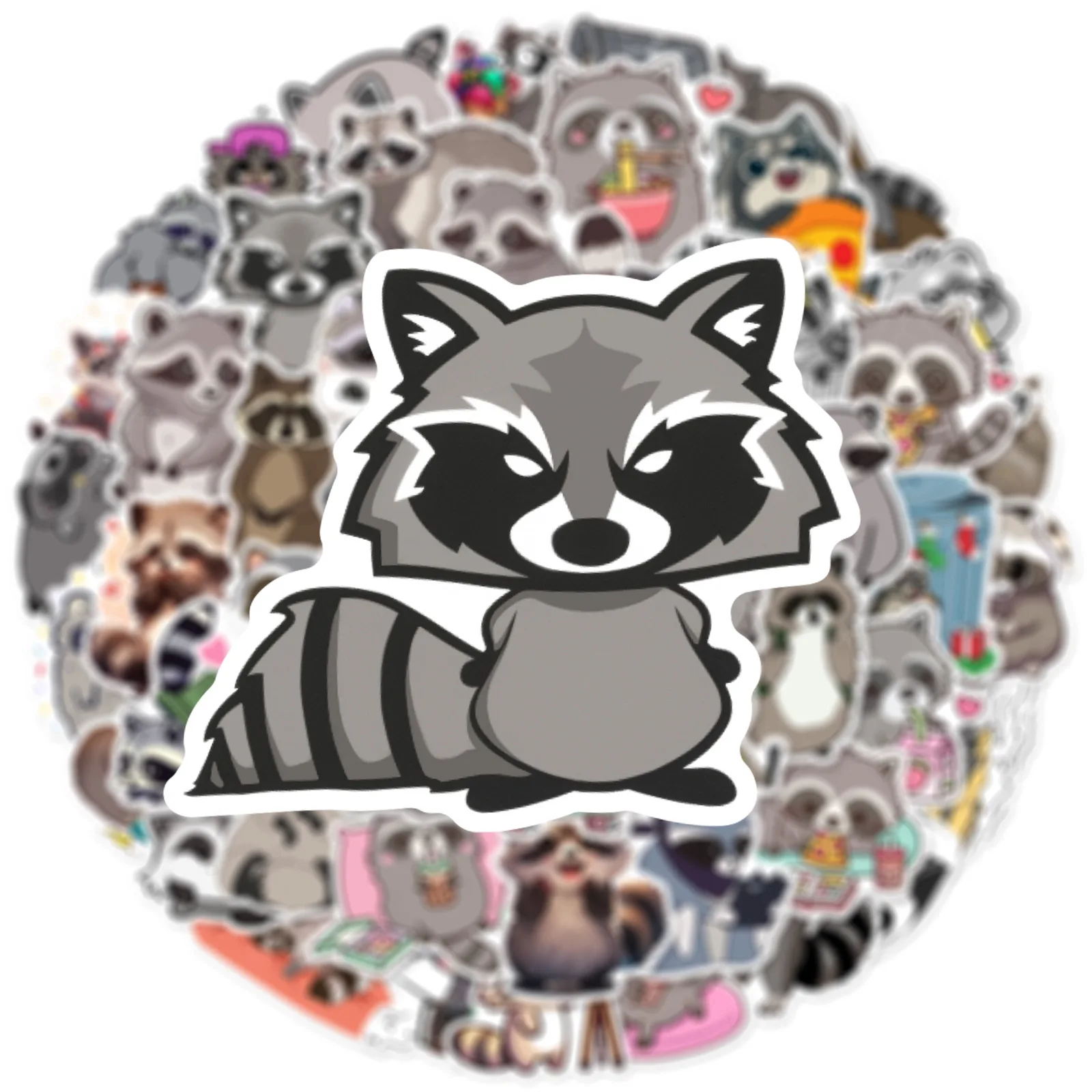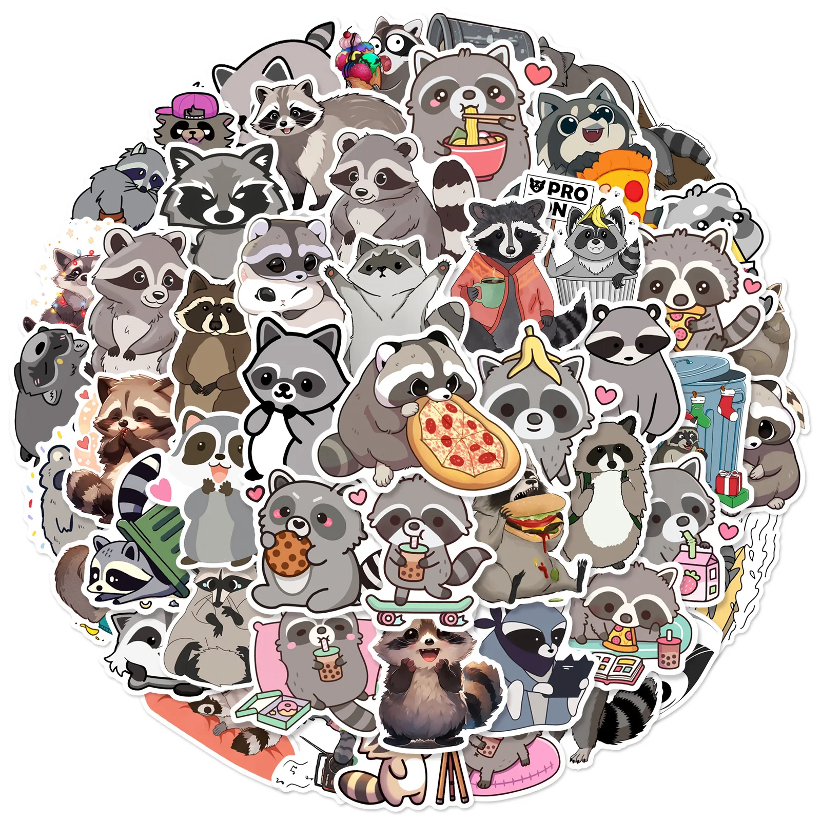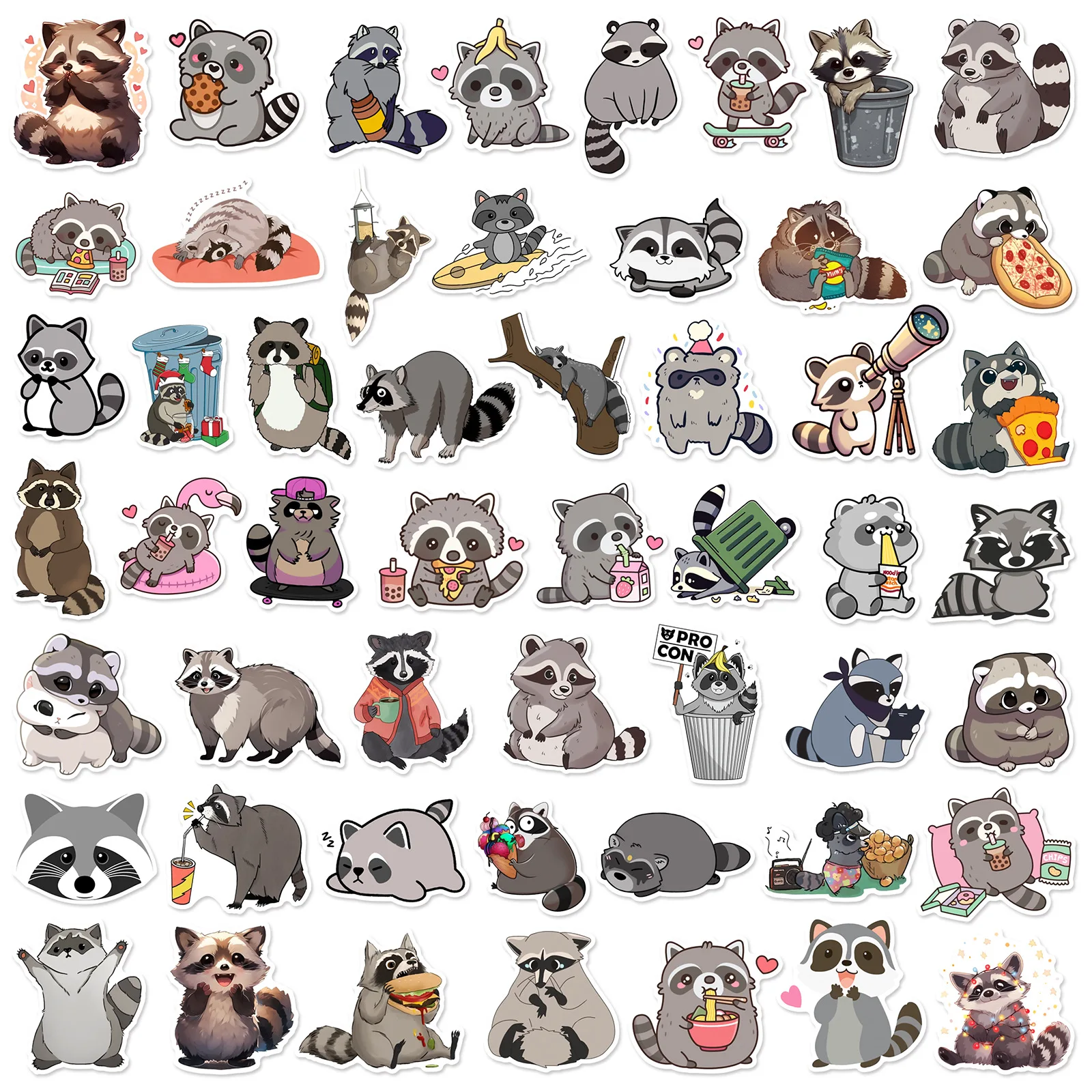 50 Uds Procyon lotor animales dibujos animados pegatinas de grafiti DIY teléfono guitarra portátil maleta taza pegatina impermeable juguete para niños