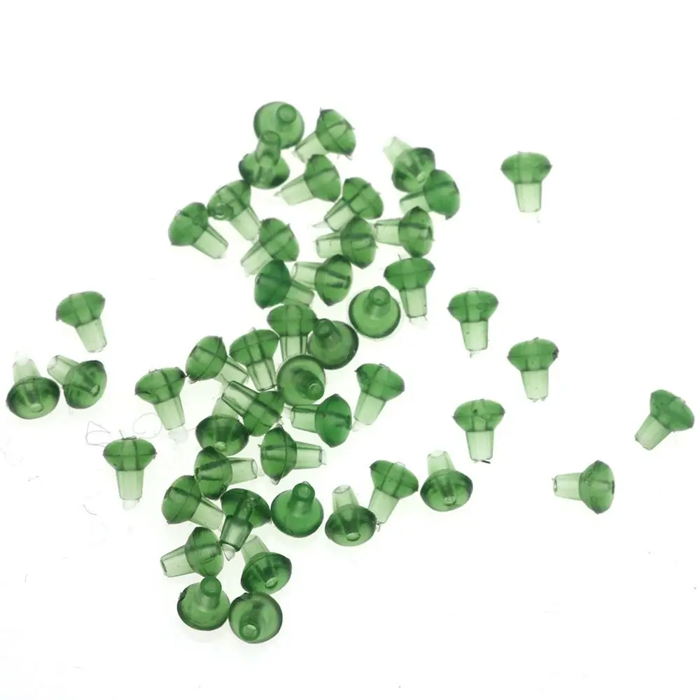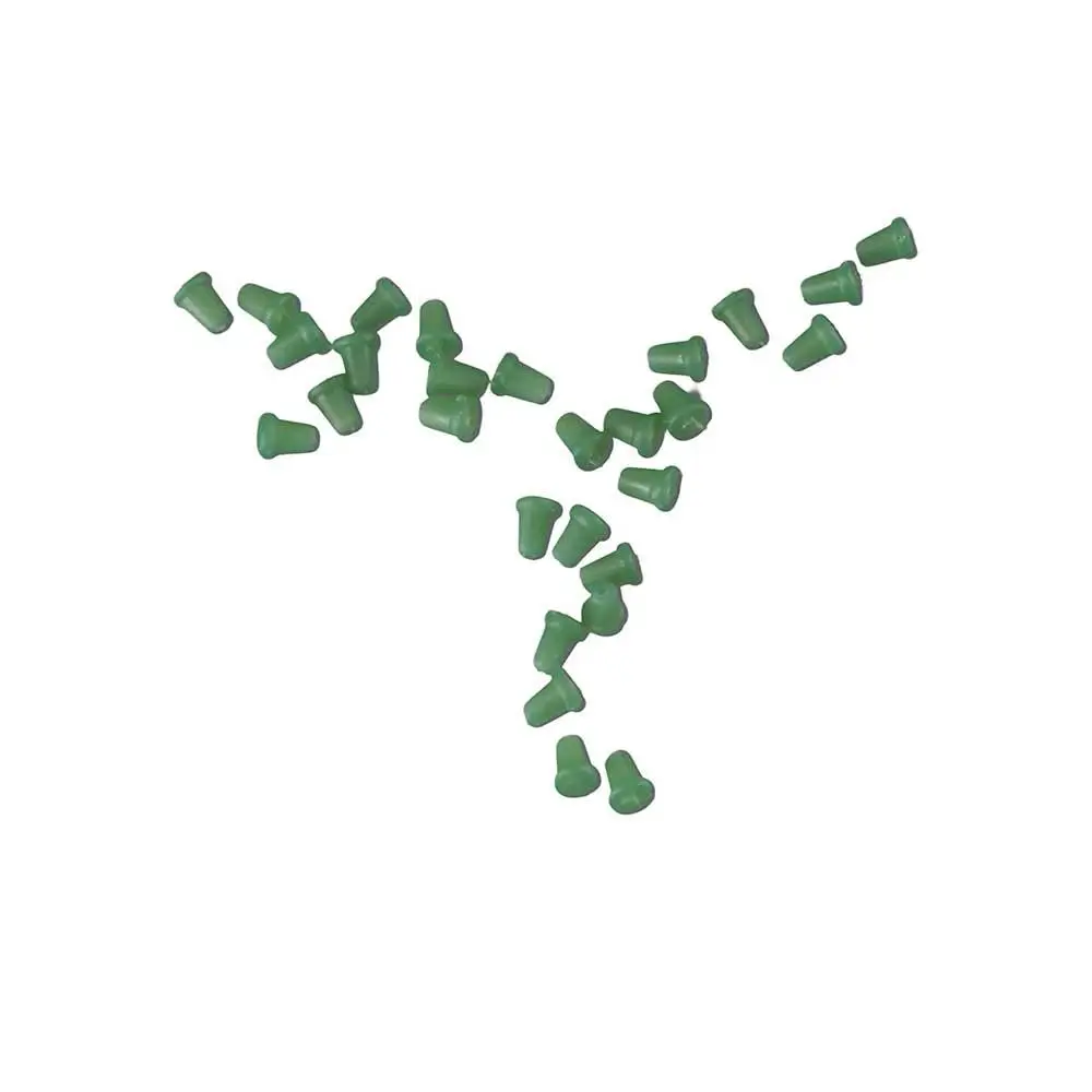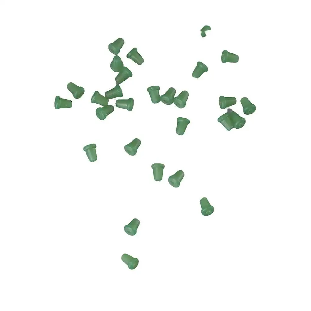 Material: Soft Rubber Color: transparent,Green,army green Size: Approx 2.5mm Quantity: 50pcs/Bag Package Include: 50pcs Hook Stops Feature: 1. Bait screws can be a quick and easy way to connect decoy Boilies, nuts and pop-up windows, and can be used for beautiful presentations. 2. Super tight hook beads, Installed on special position to ensure the excellent attack angle.