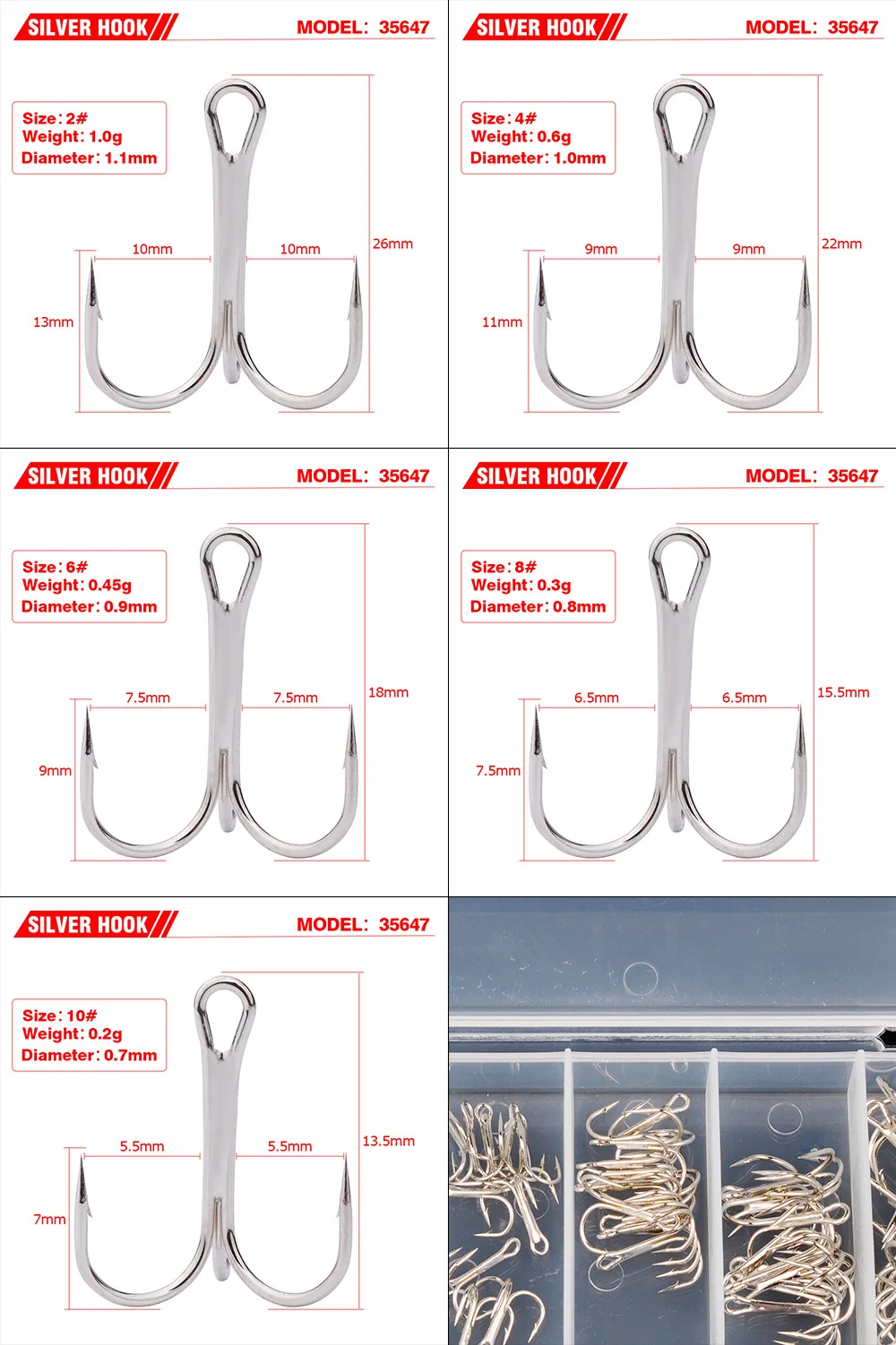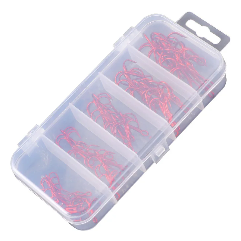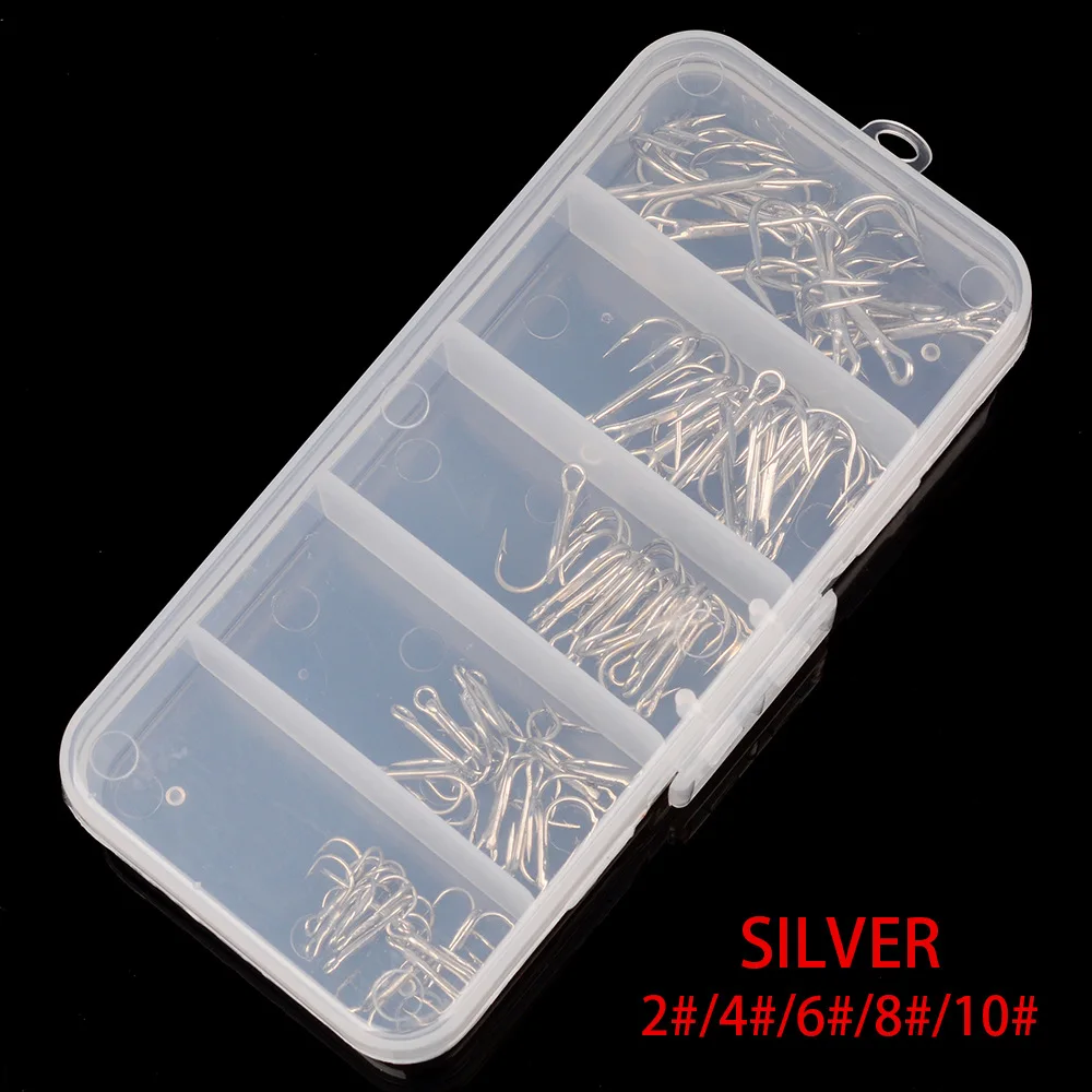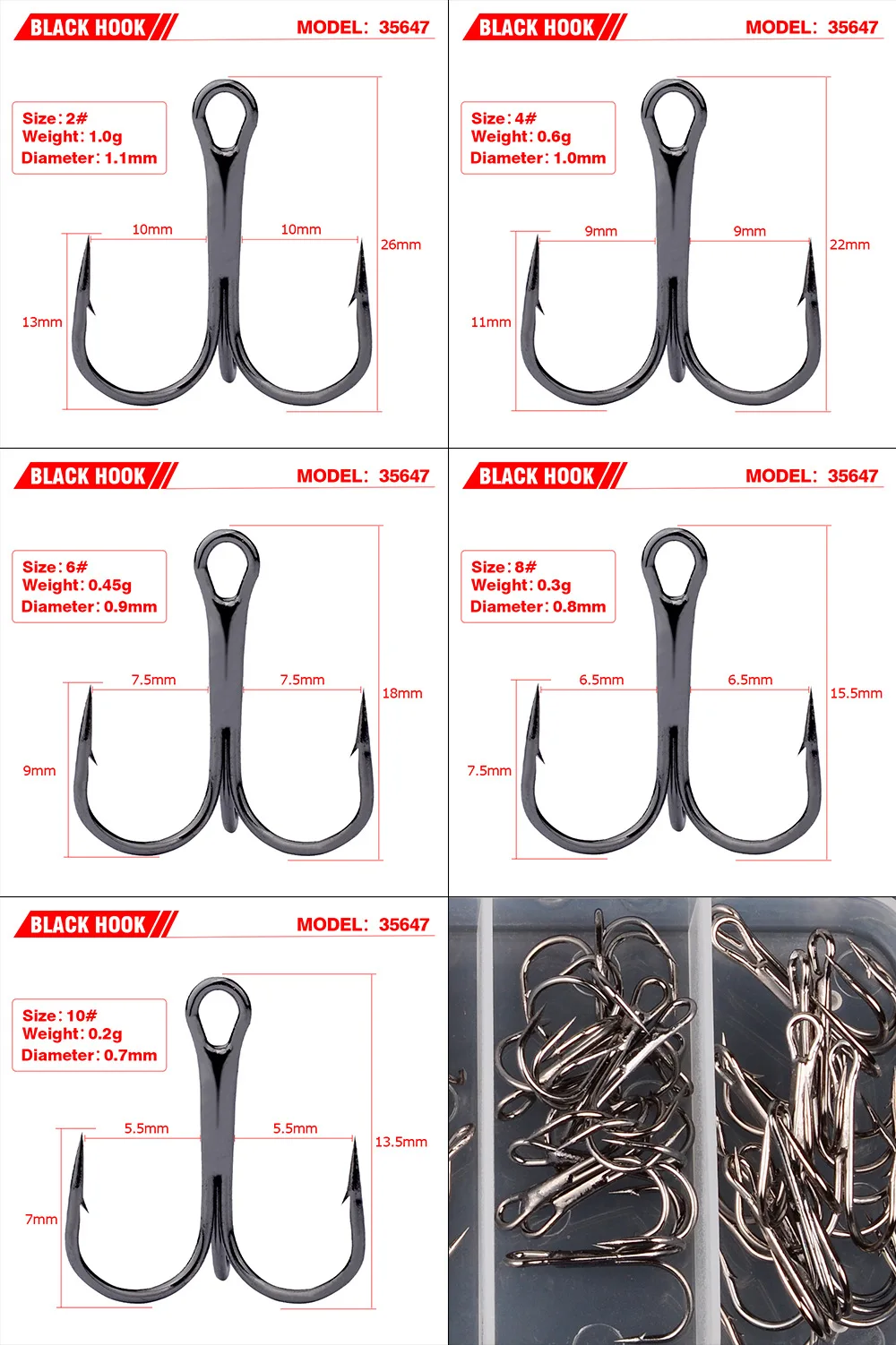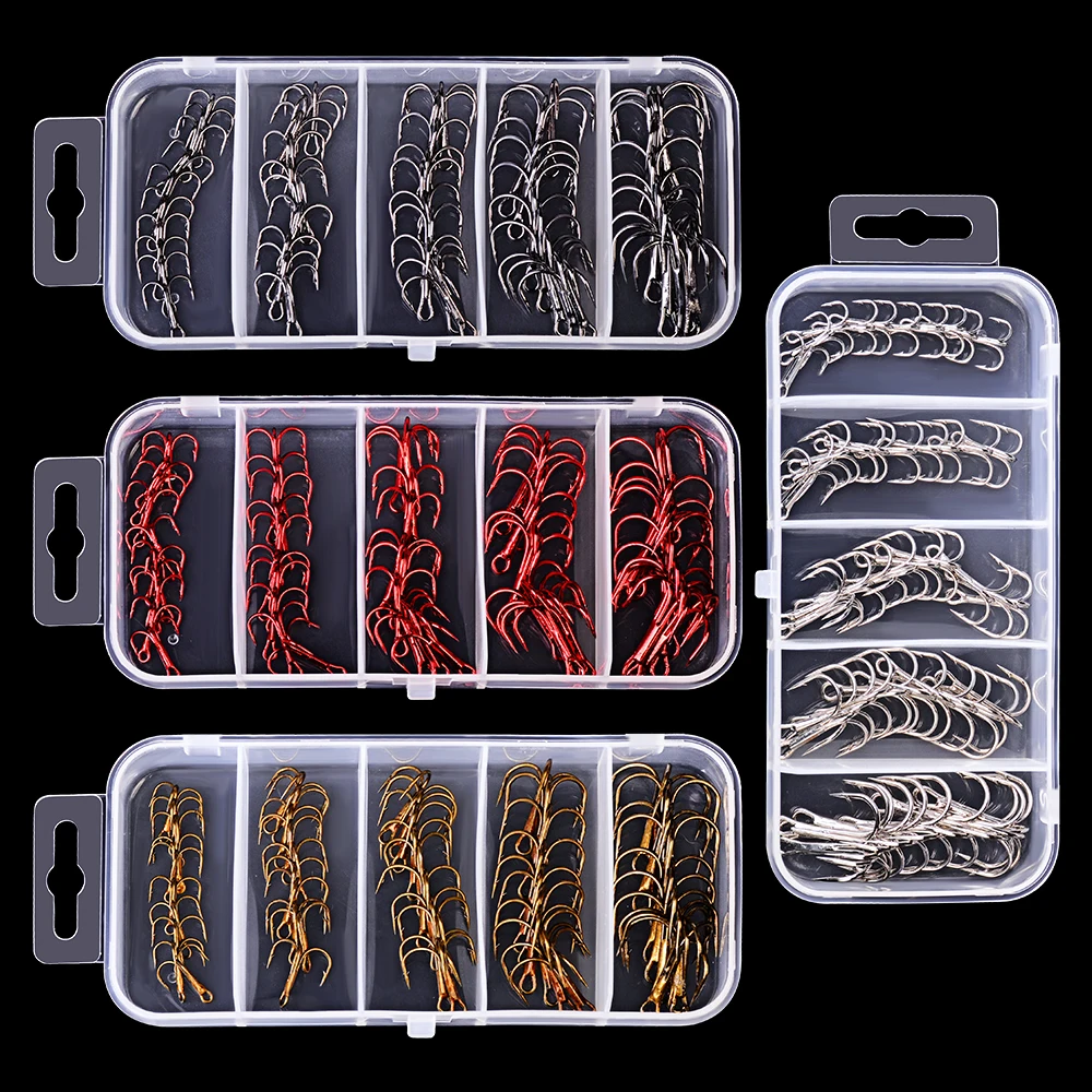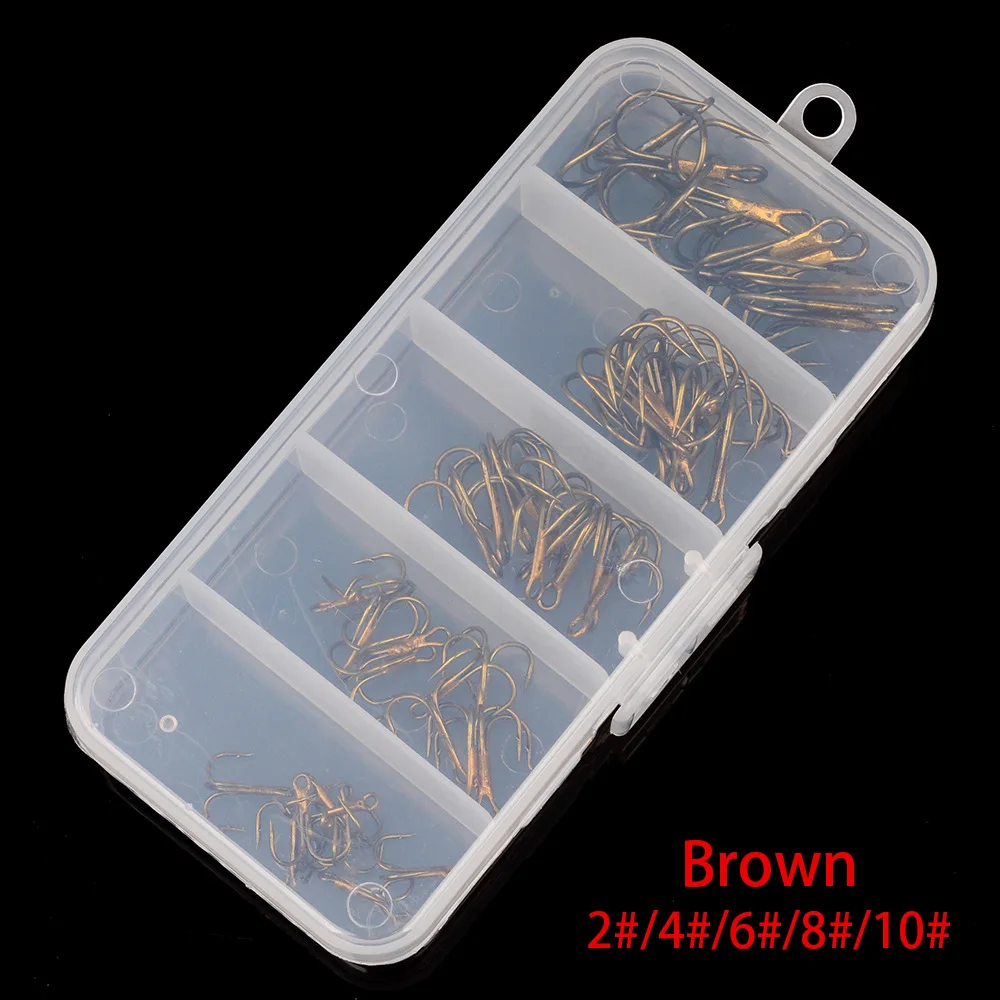 50 unidades/caja 2 # /4 # /6 # /8 # /10 # Anzuelos de pesca de alta calidad, plantilla de Color negro, anzuelo grande, anzuelos triples