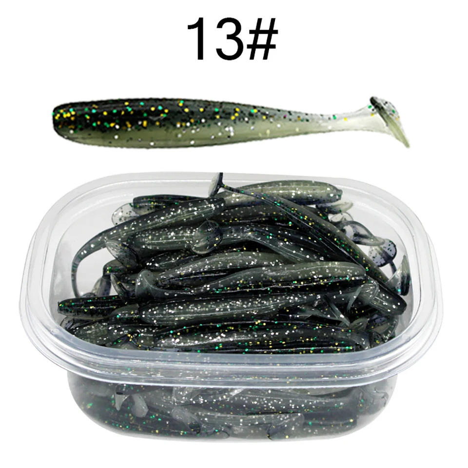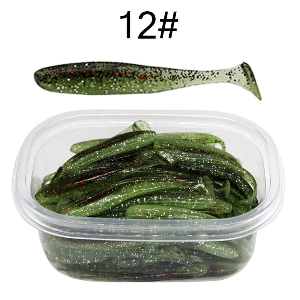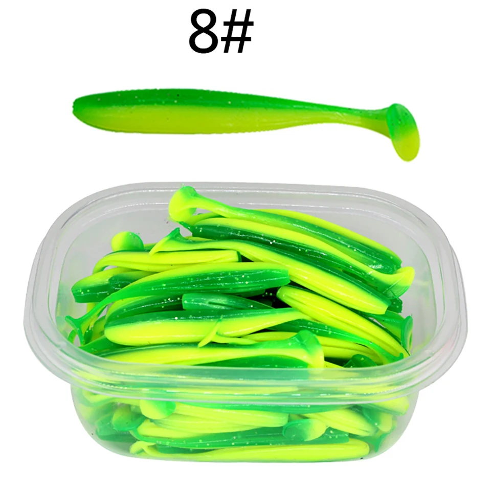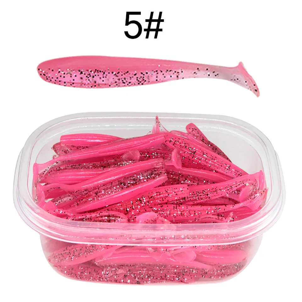50 Uds. 55MM 70MM 90MM señuelos blandos con caja señuelo de pesca Shad Wobbler cebo de silicona Swimbait Streamer Sea Bass Fishing Tackle