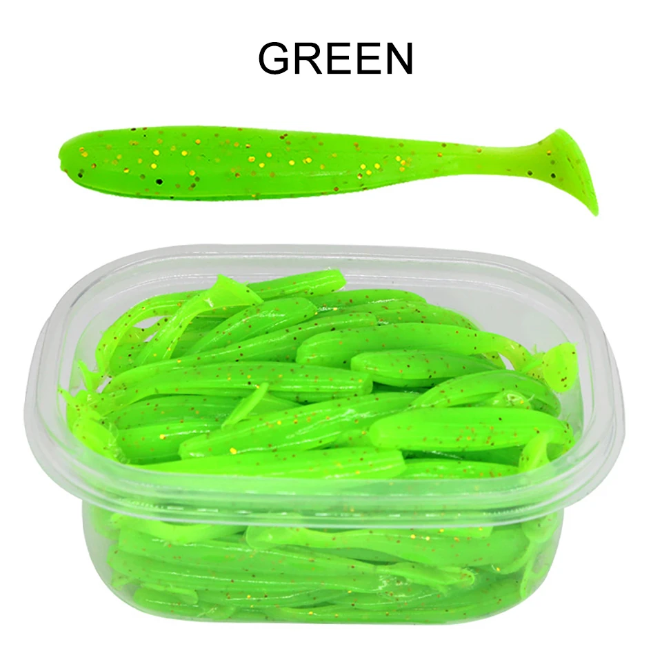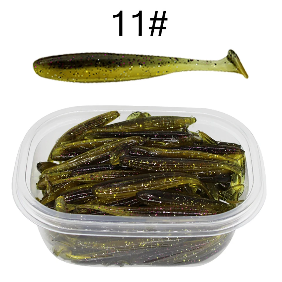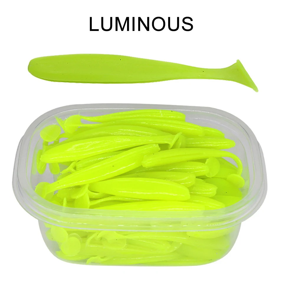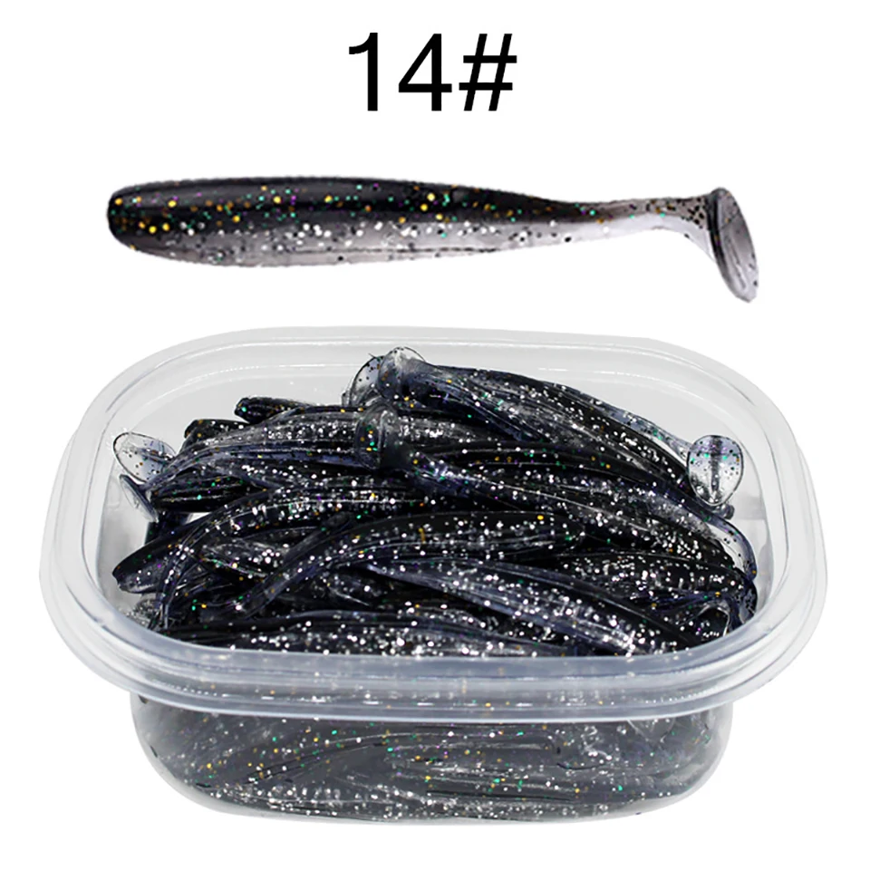 50 Uds. 55MM 70MM 90MM señuelos blandos con caja señuelo de pesca Shad Wobbler cebo de silicona Swimbait Streamer Sea Bass Fishing Tackle